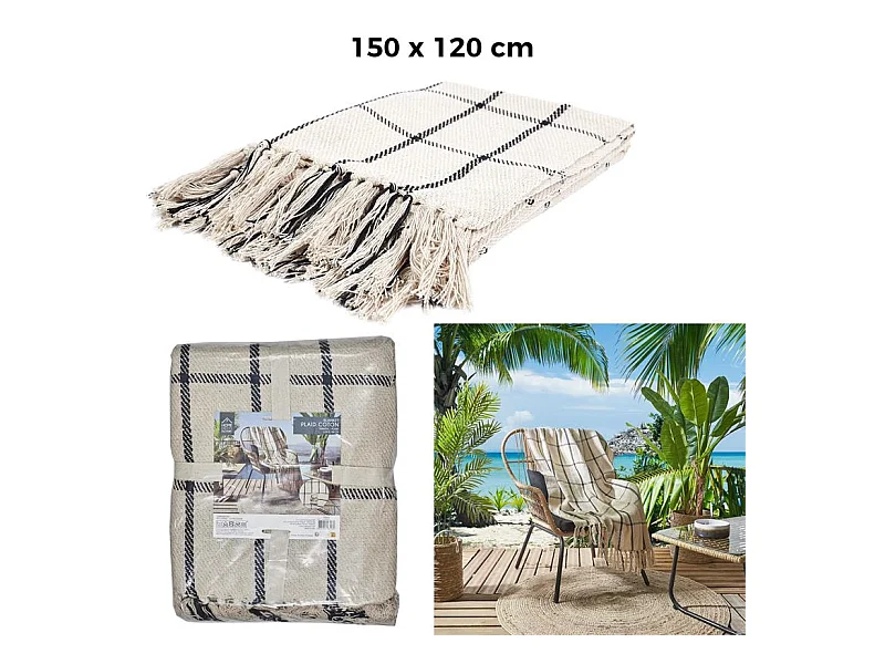 Plaid Coton Imprime Beige Et Noir 150x120cm Beige, Noir