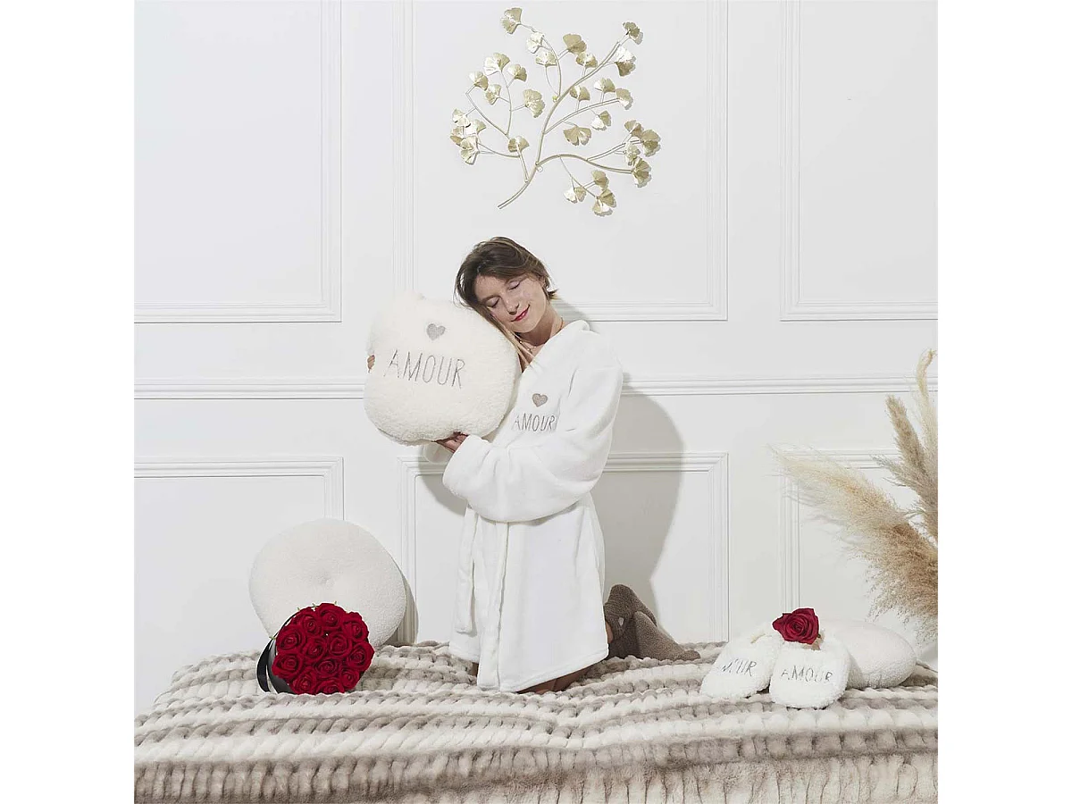Plaid Coussin 2-en-1 "Amour" en Sherpa Coloris Crème - SATINA