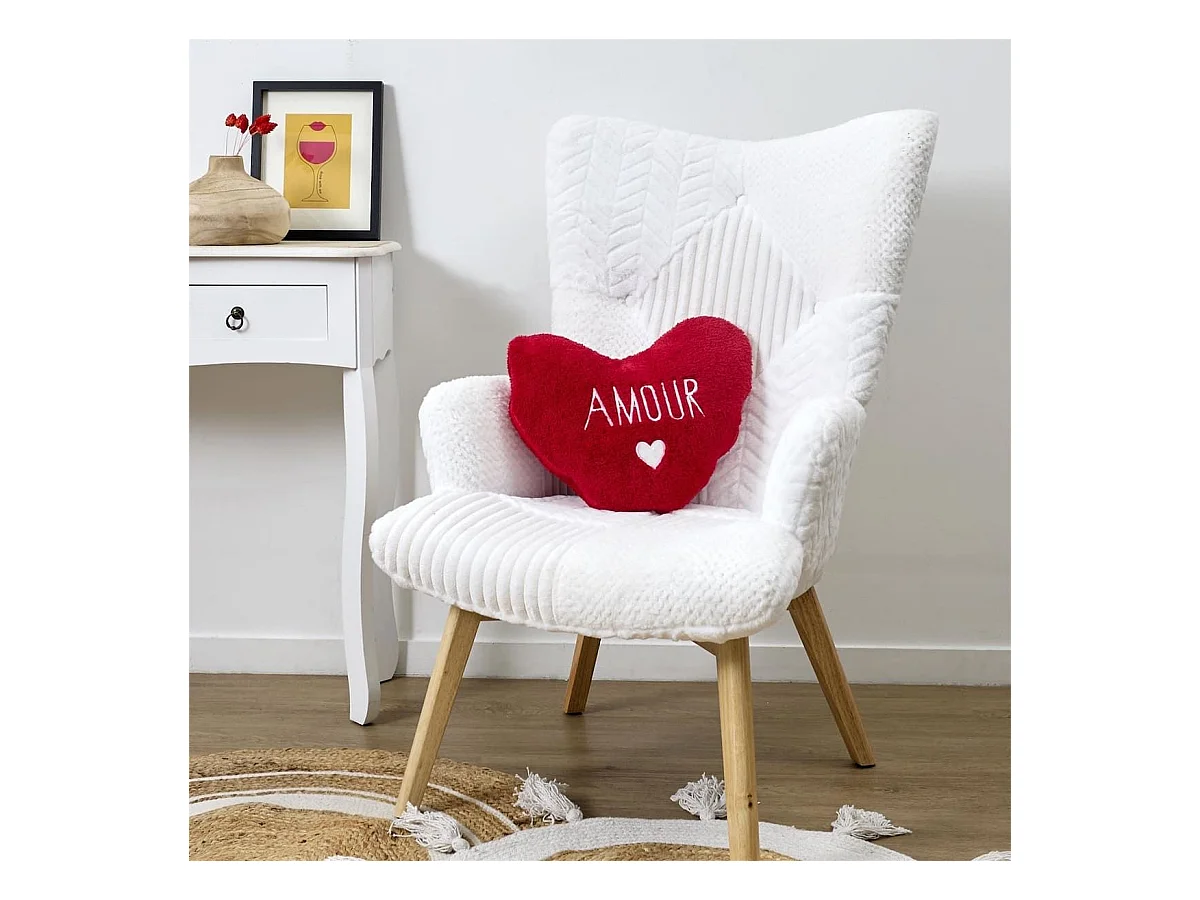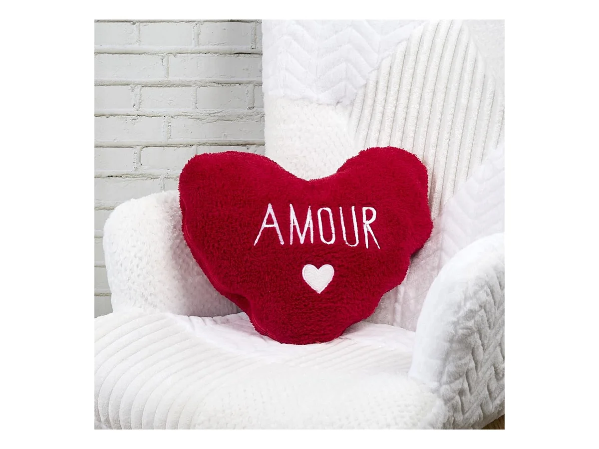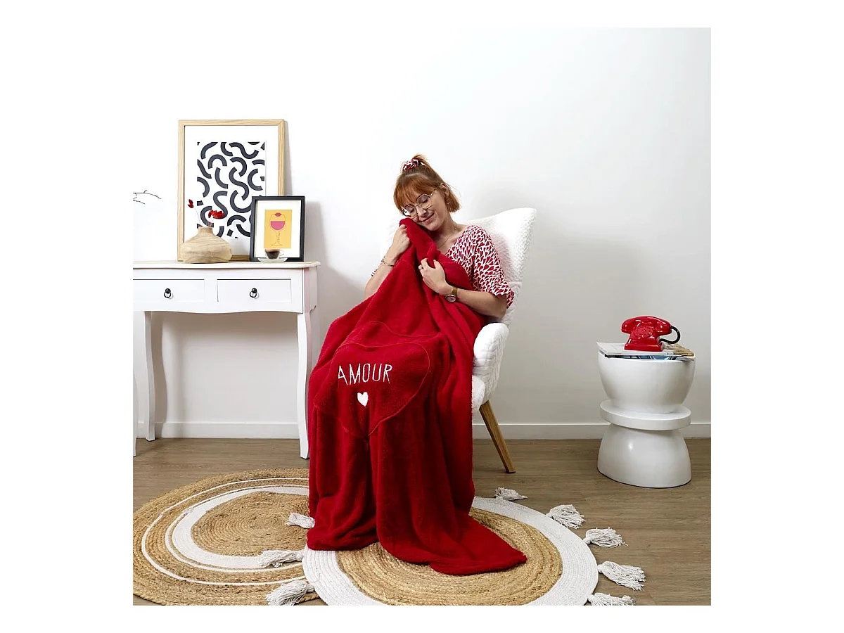 Plaid Coussin 2-en-1 "amour" en Sherpa Coloris rouge