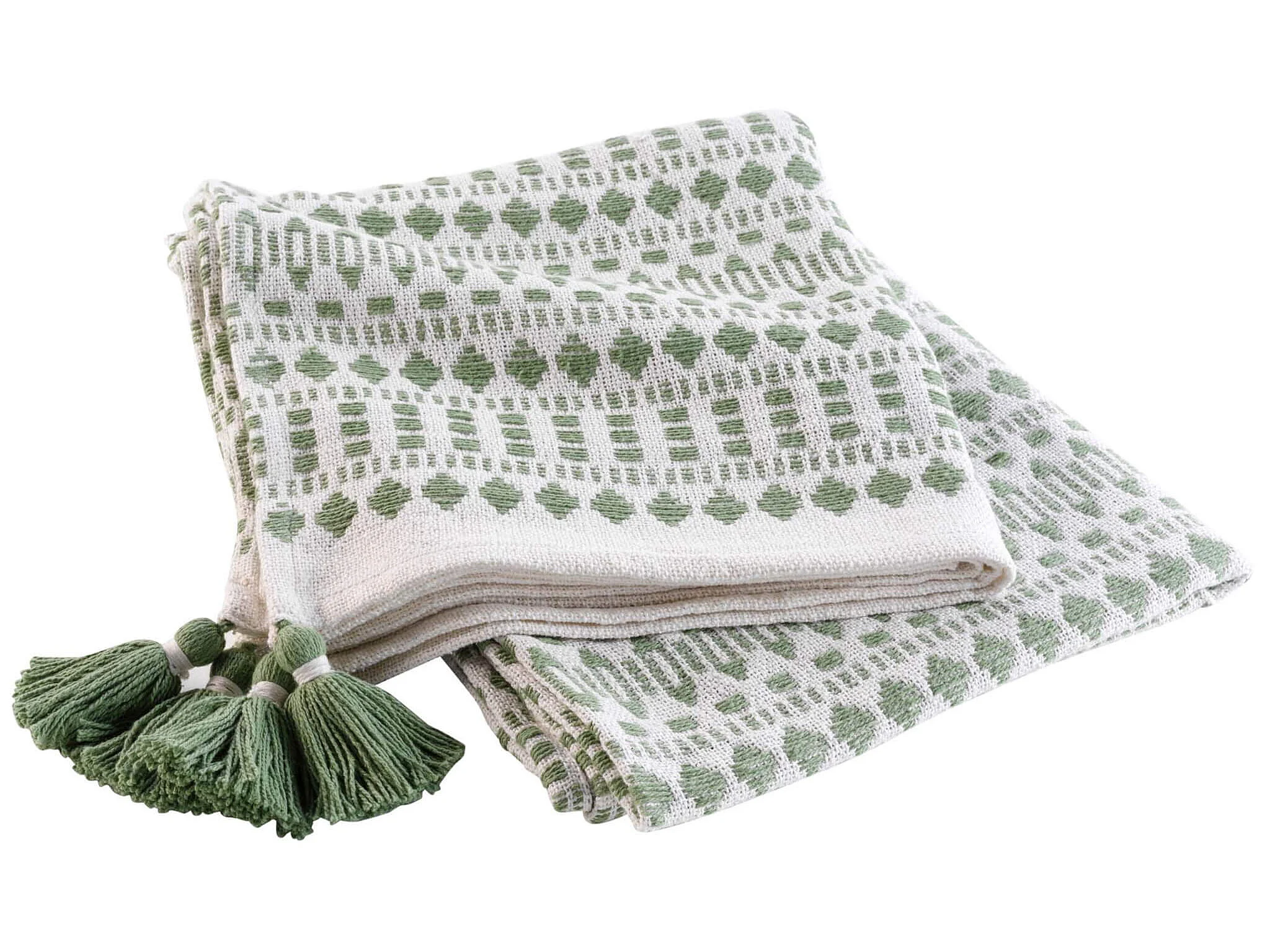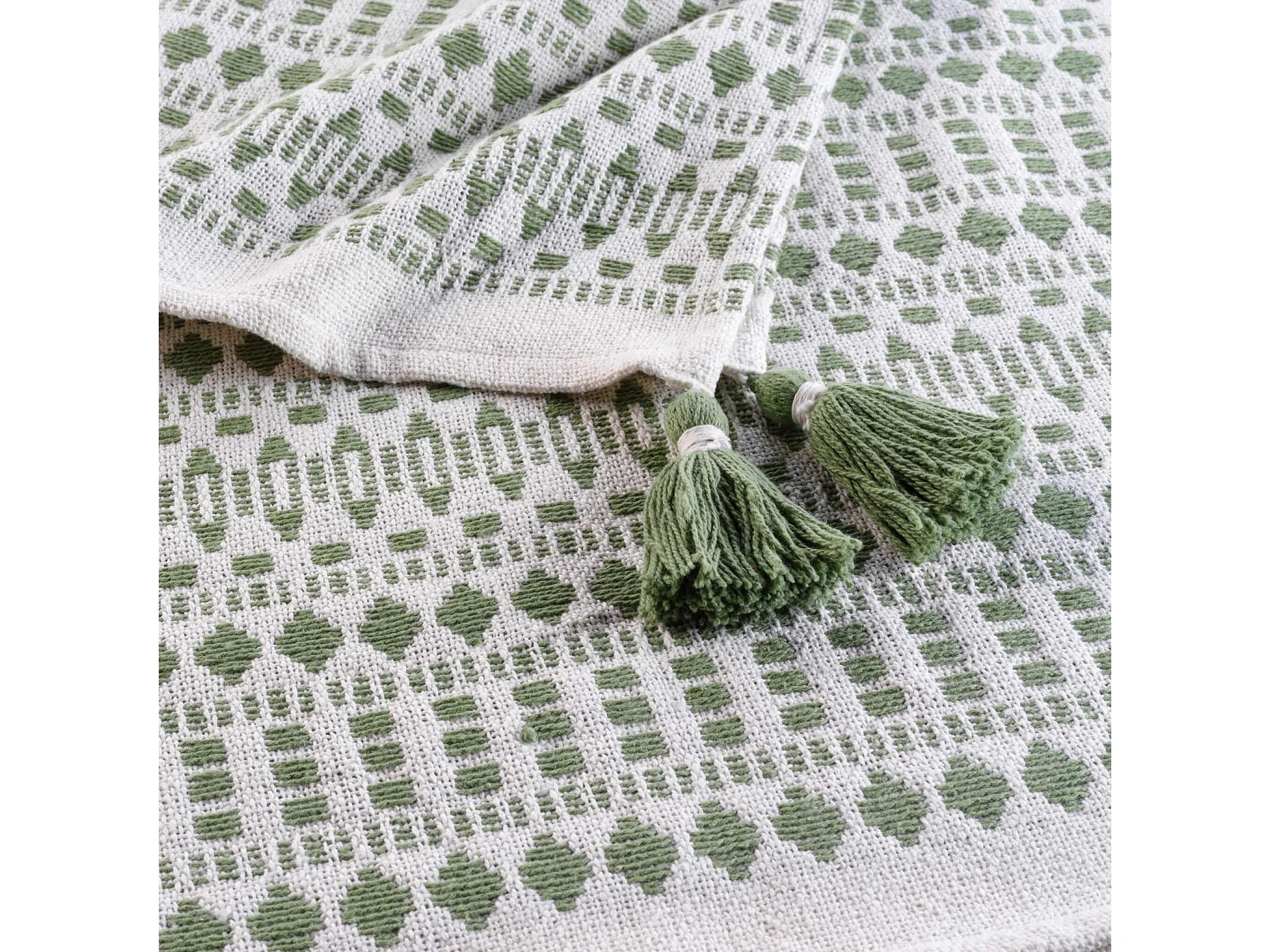 RAWYIA - Plaid 130x180cm Vert et Beige à Motifs Géométriques