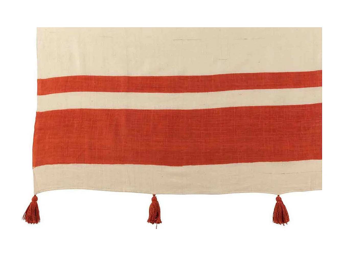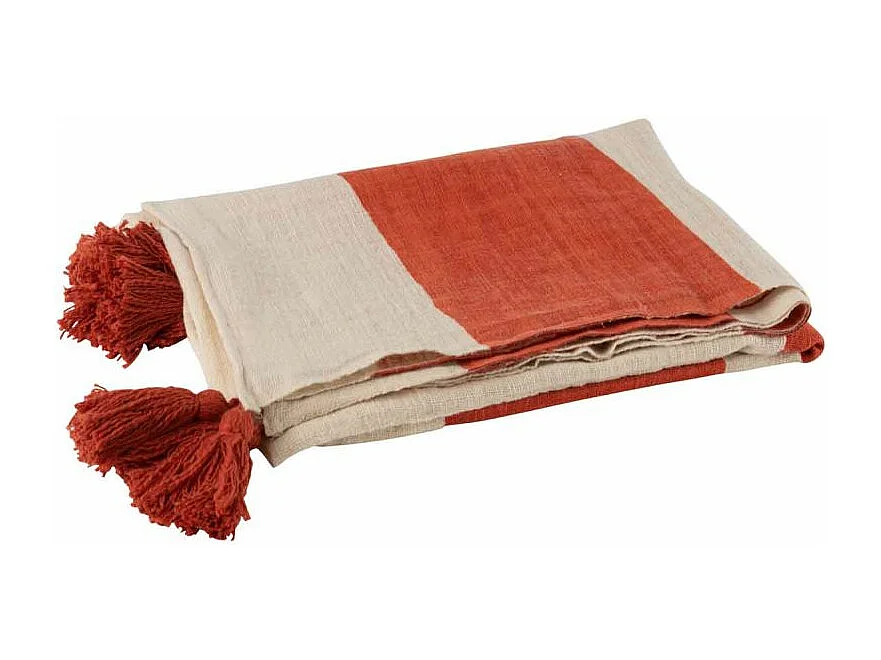 Plaid Déco à Pompons "Rayures" 130x170cm Corail