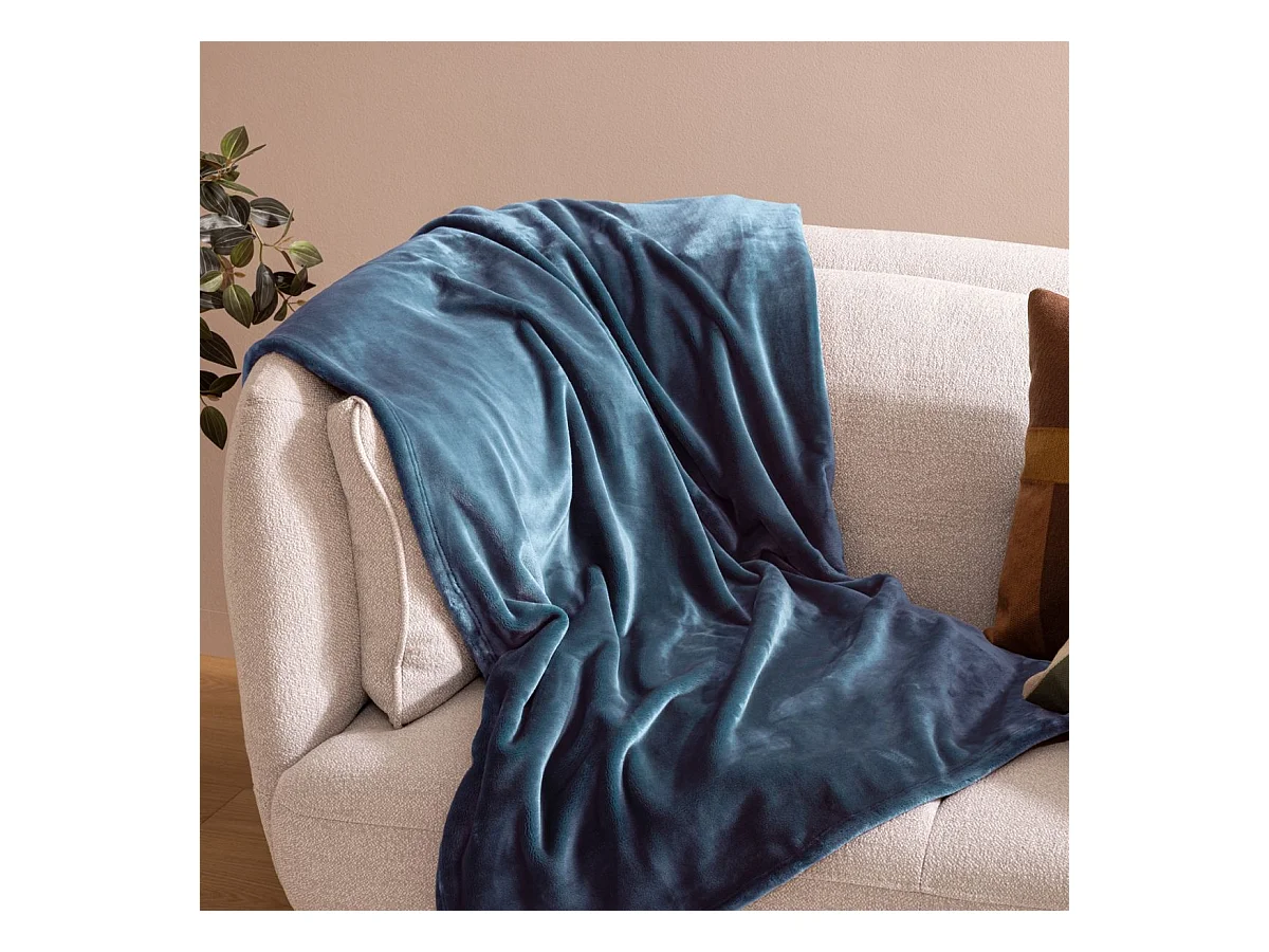Plaid Flanelle Fourrure Bleu Egéen 180 x 230 cm