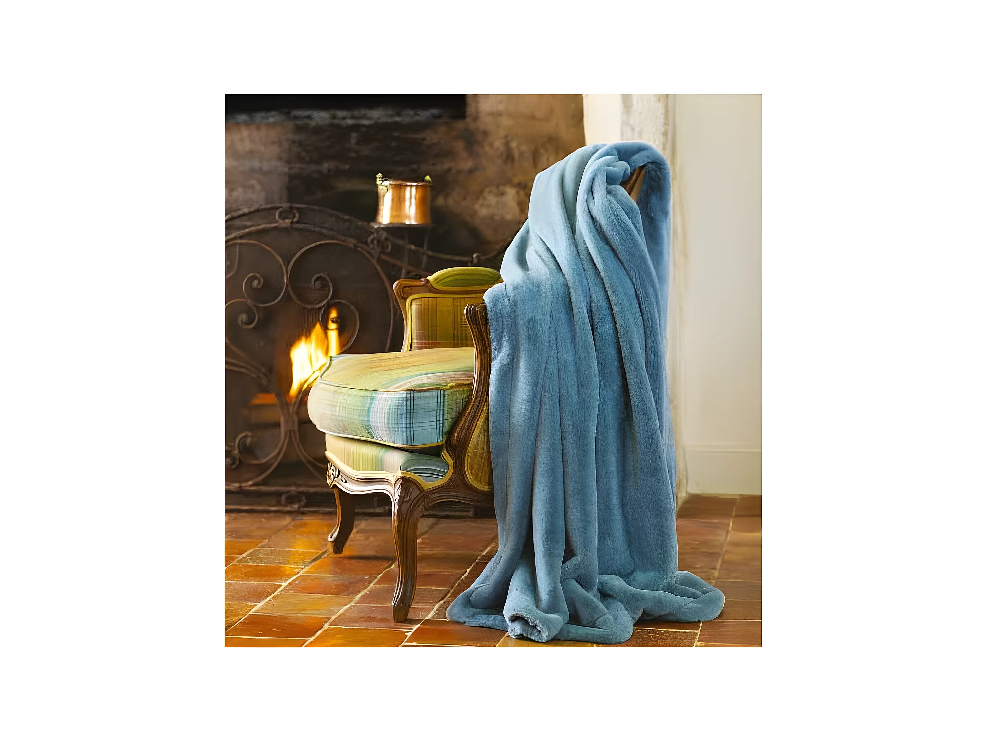 Plaid Flanelle Fourrure Bleu Egéen 130 x 180 cm