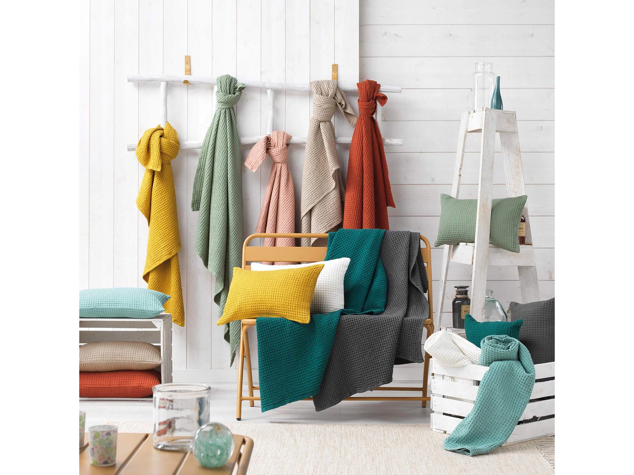 Plaid Nid d'Abeille Uni "Gaufrette" 125x150cm Pétrole