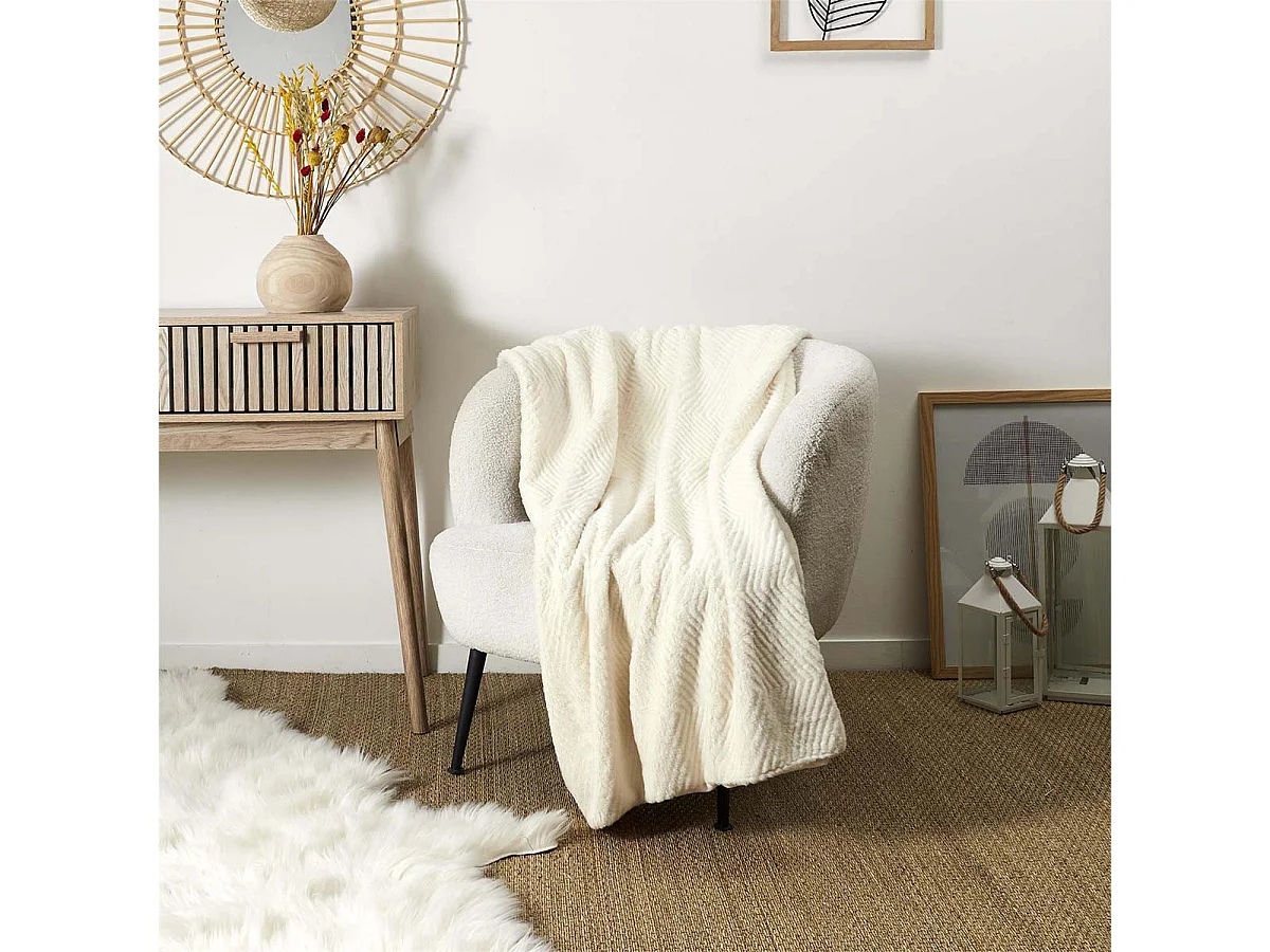 Plaid Ultra Doux 140x200cm Imitation Fourrure Texturée Blanc - ICONIC