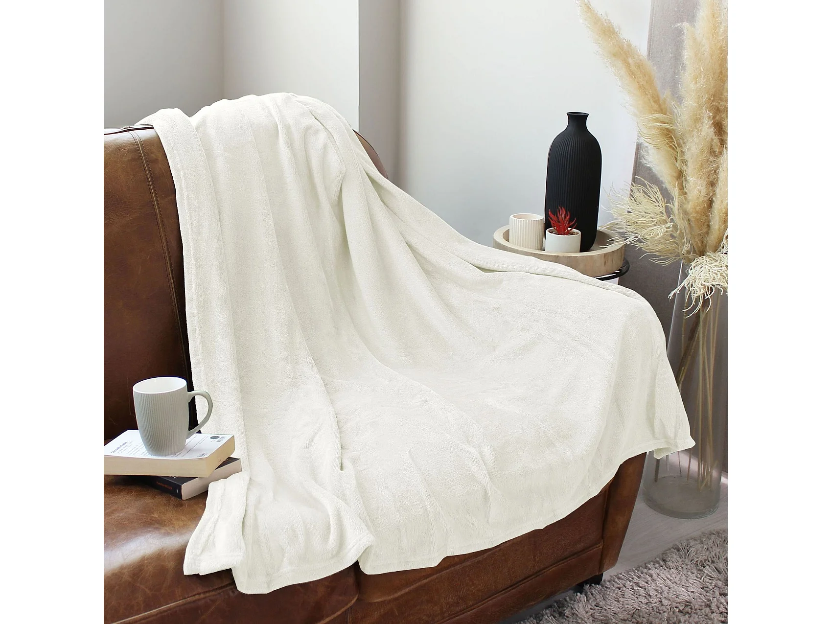 Plaid Polaire Uni "Coral Fleece" 125x150cm Écru