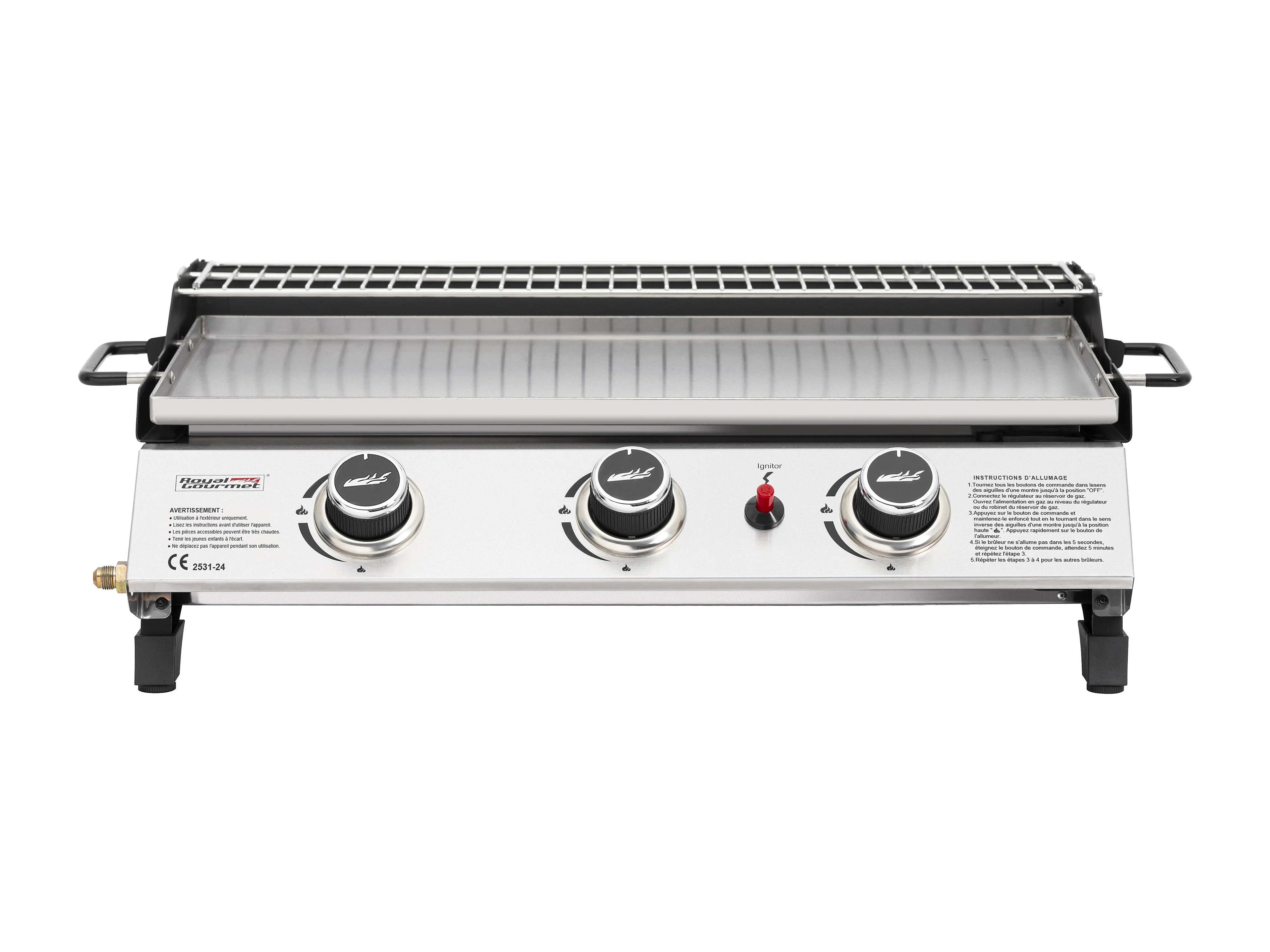 Plancha Gaz Royal Gourmet -3 Brûleurs 7.5kW-Plaque 61,5 x 32cm avec Grille de Réchauffage