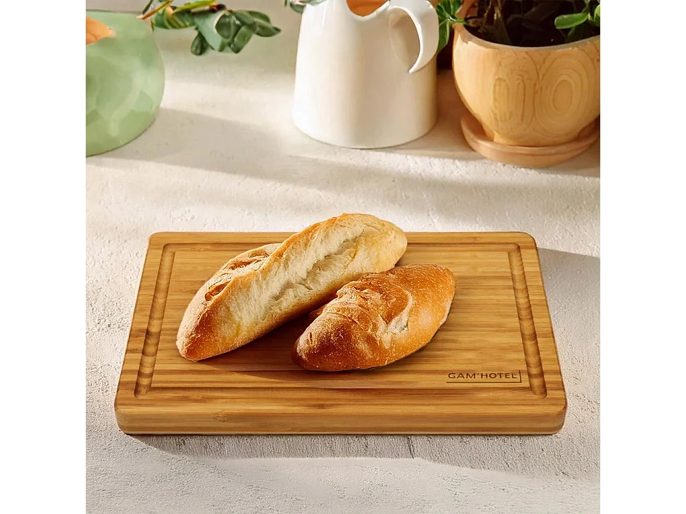 Planche à découper rectangle en bois avec poignée - Dim : L 38 x l 26.5 x h 3.5 cm