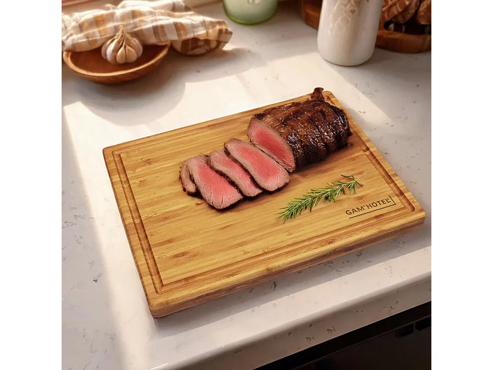 Planche à découper rectangle en bois avec poignée - Dim : L 38 x l 26.5 x h 3.5 cm