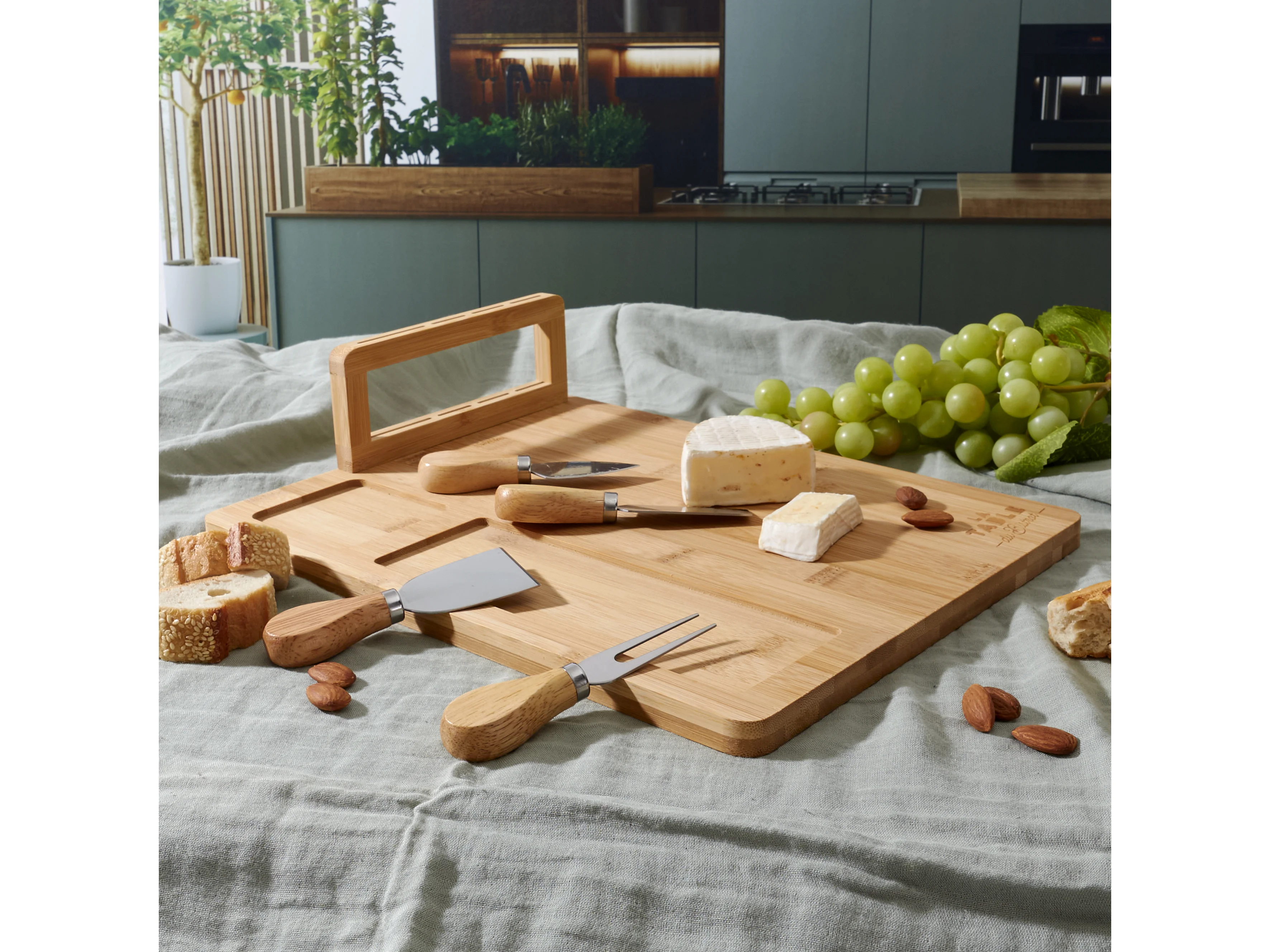 Planche A Fromage Bambou Avec 4 Couteaux Marron
