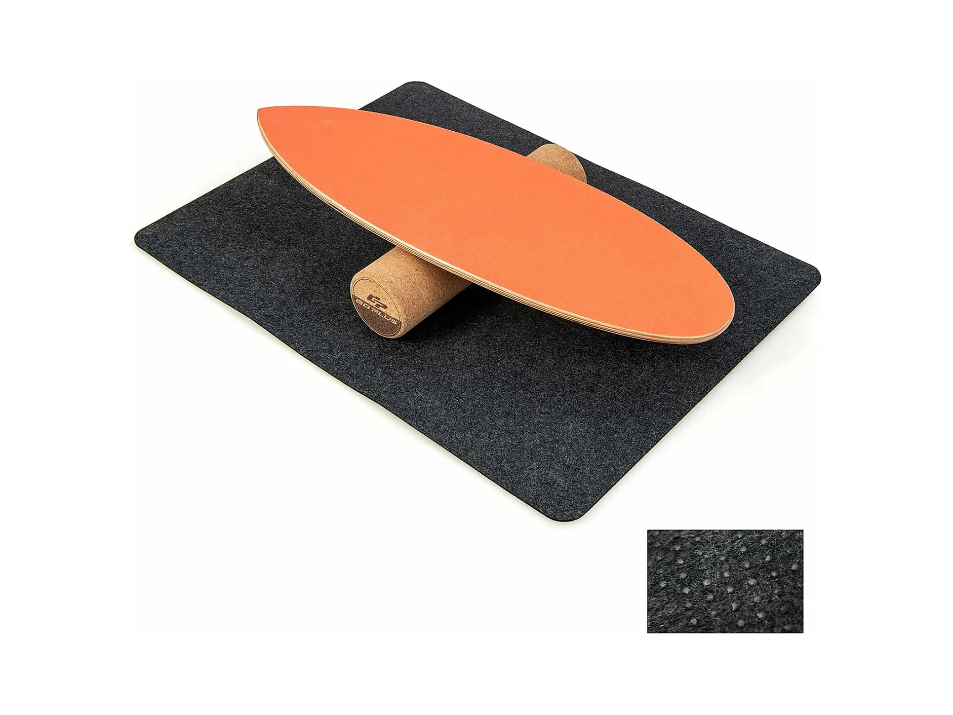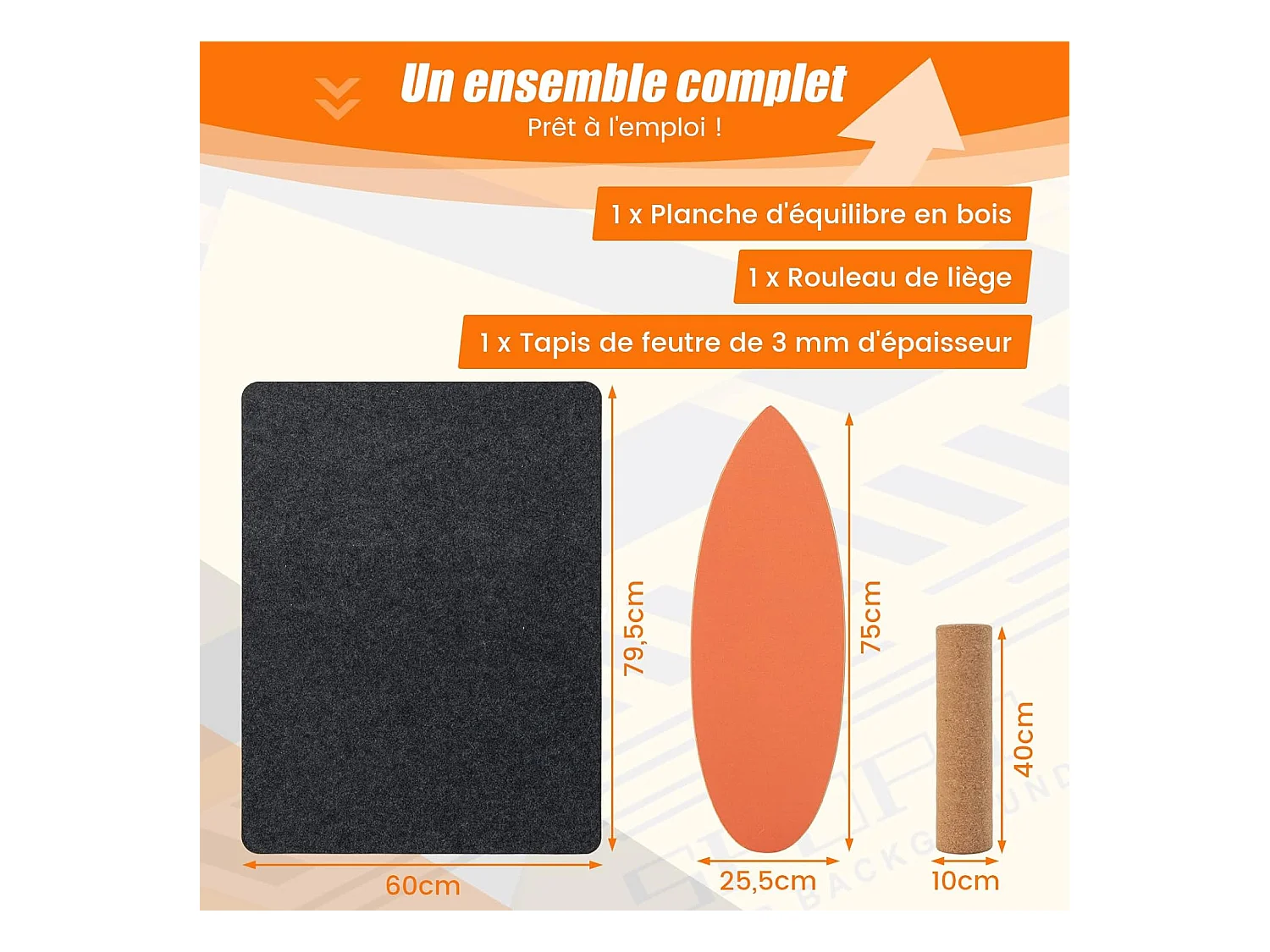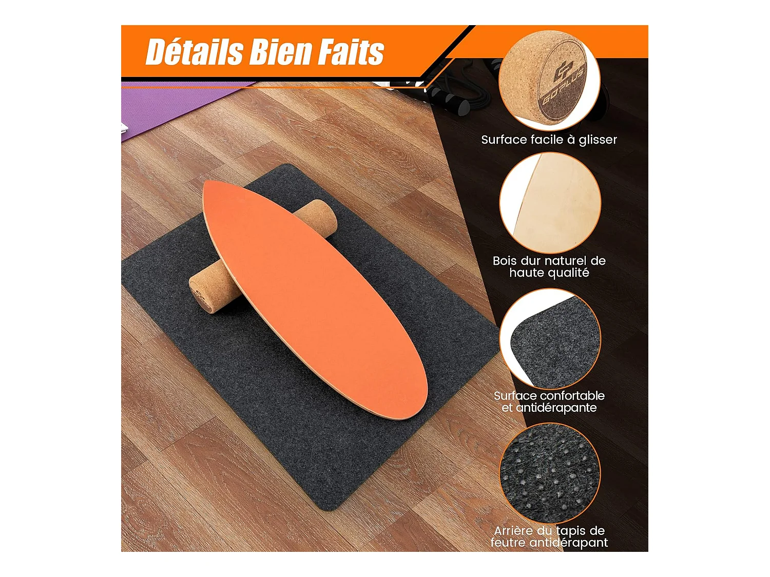 Planche d’Équilibre en Bois avec Rouleau et Tapis Antidérapant Charge 227 KG