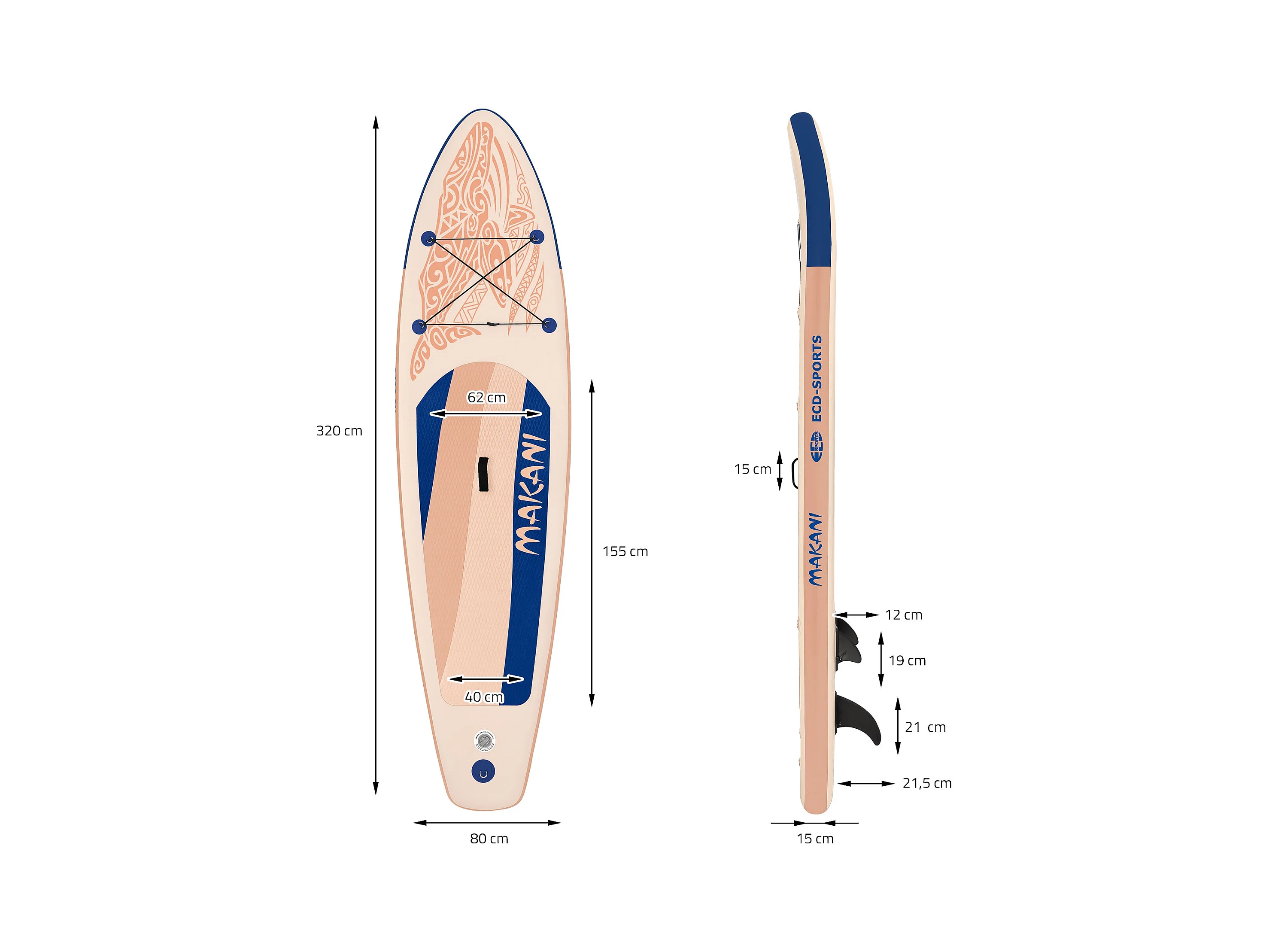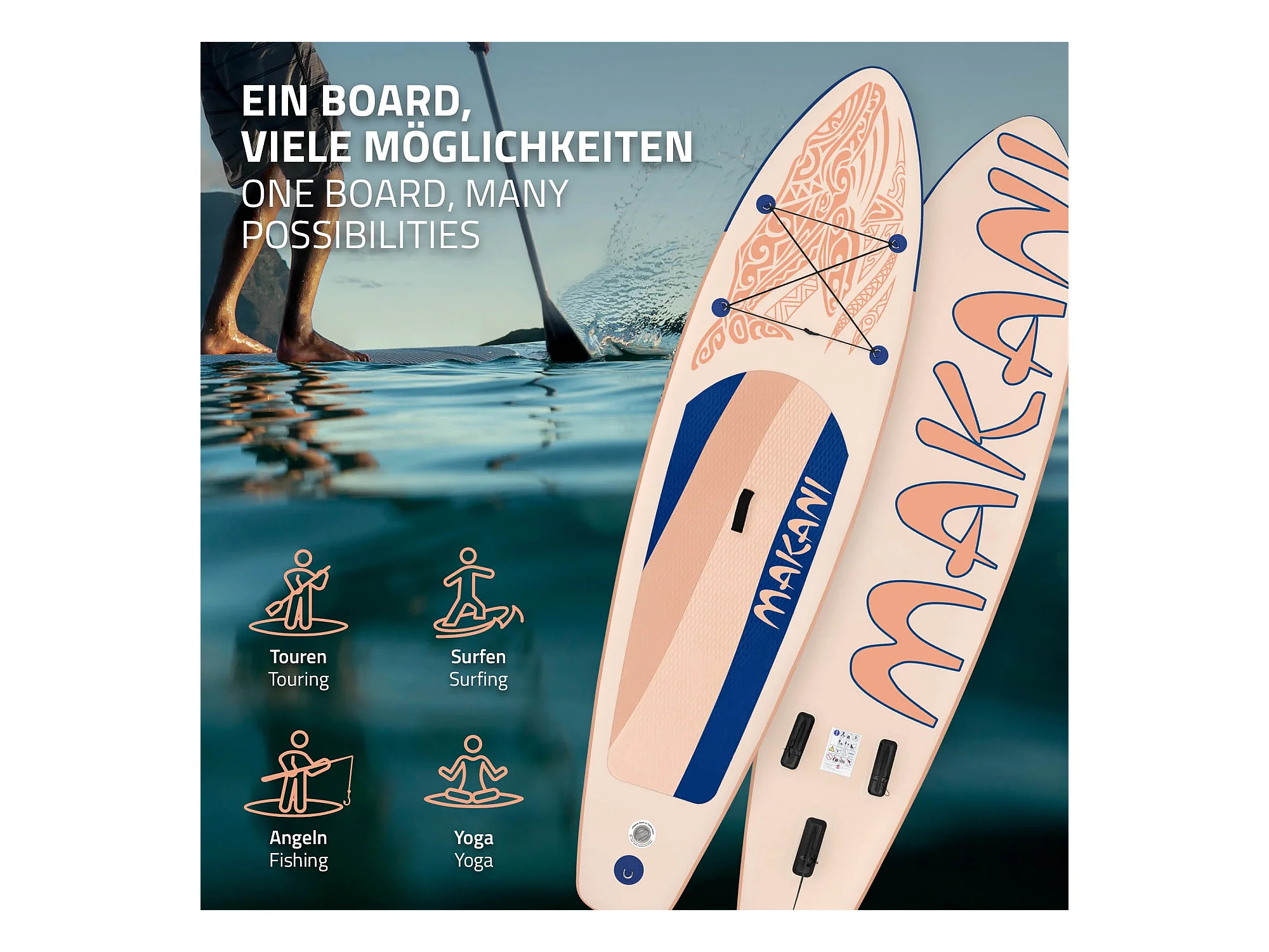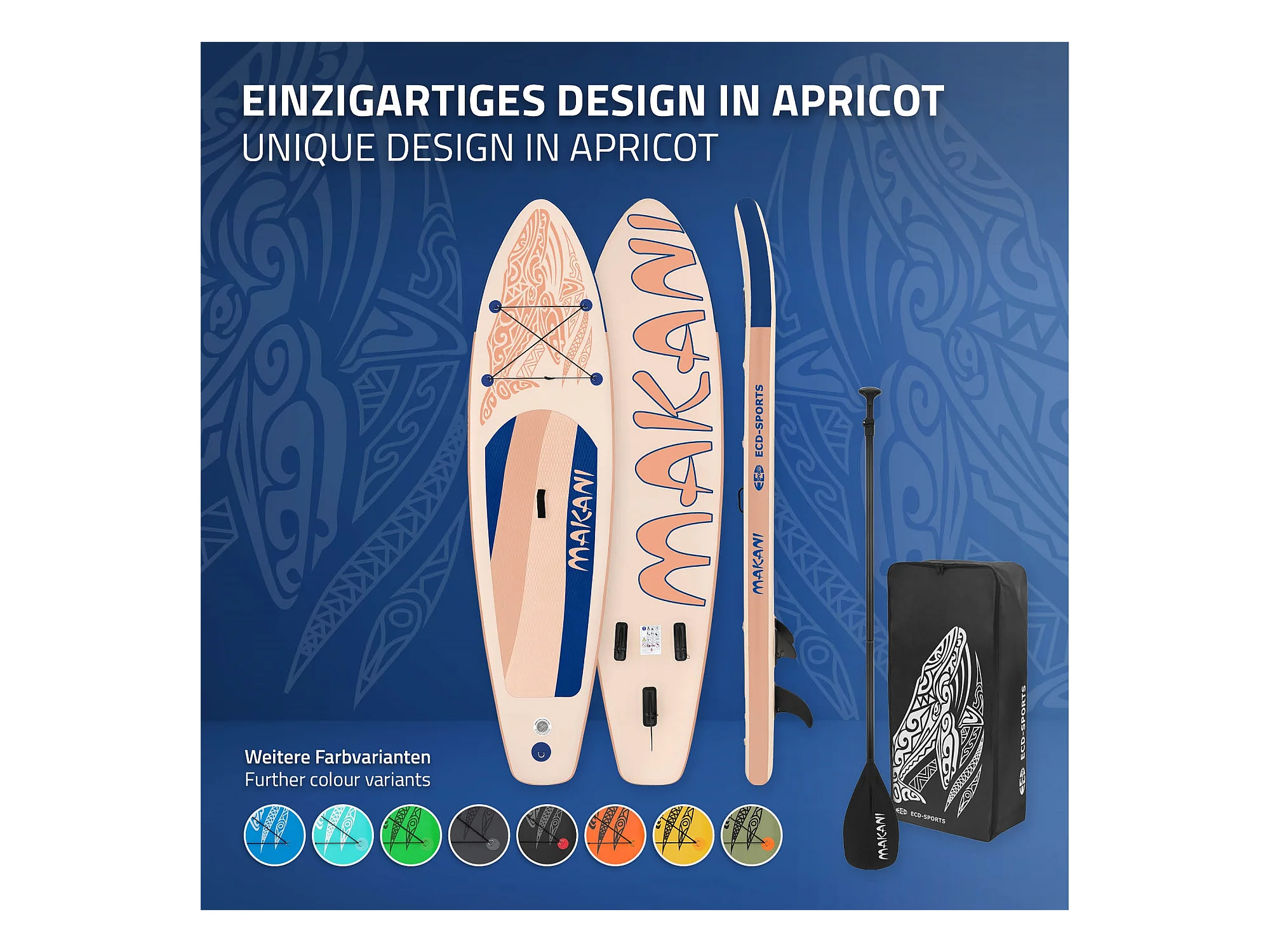 Planche stand up Makani 320x80x15 cm abricot PVC gonflable jusqu'à 120kg revêtement antidérapant avec pompe sac de transport kit de réparation pagaie