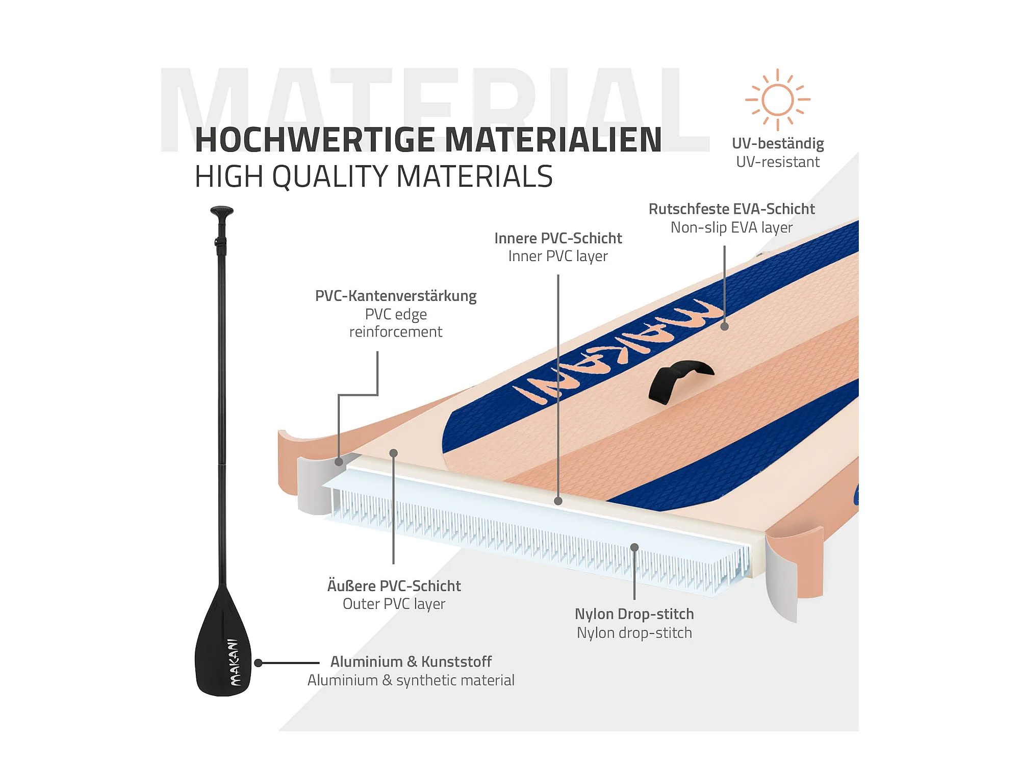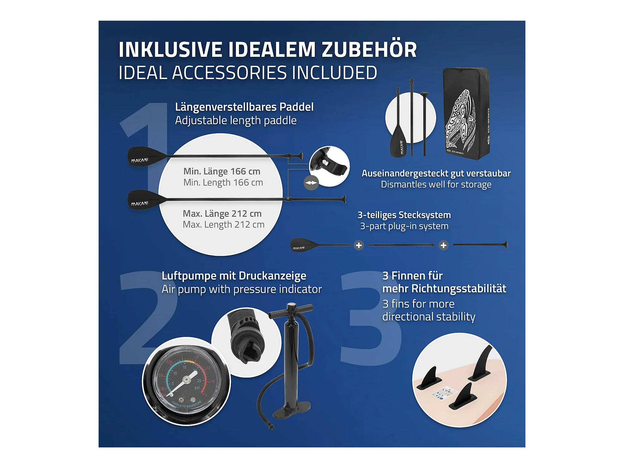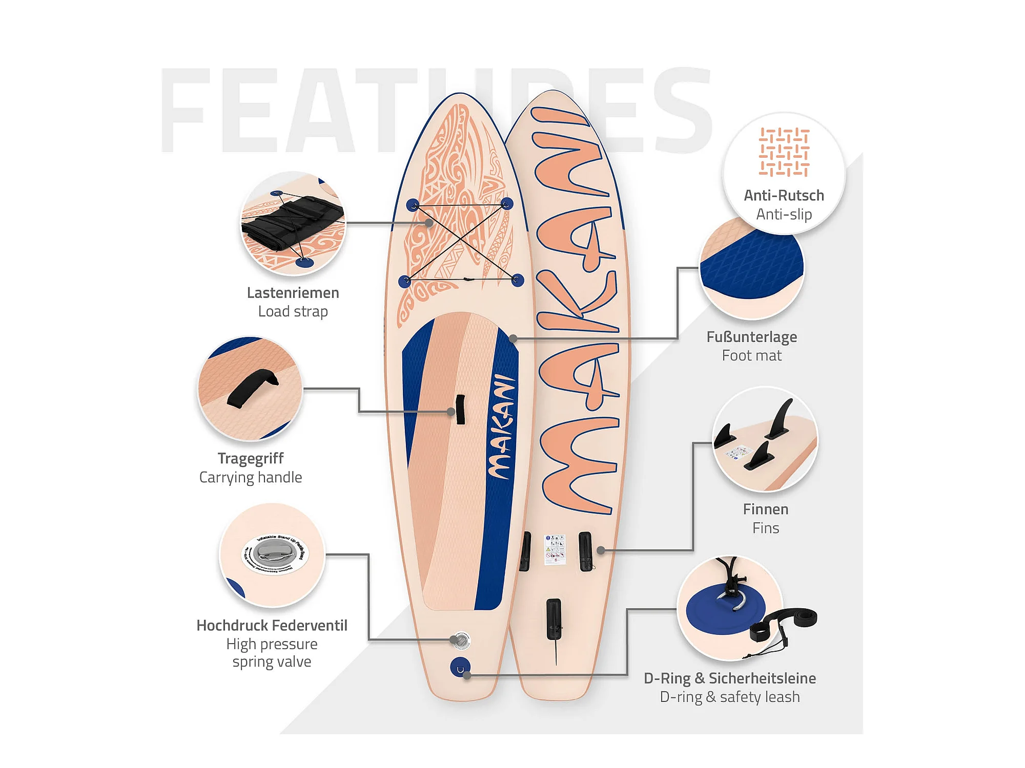 Planche stand up Makani 320x80x15 cm abricot PVC gonflable jusqu'à 120kg revêtement antidérapant avec pompe sac de transport kit de réparation pagaie