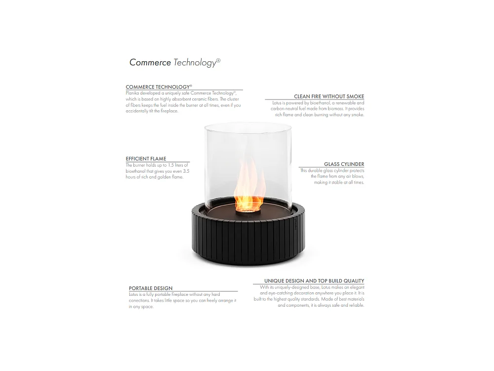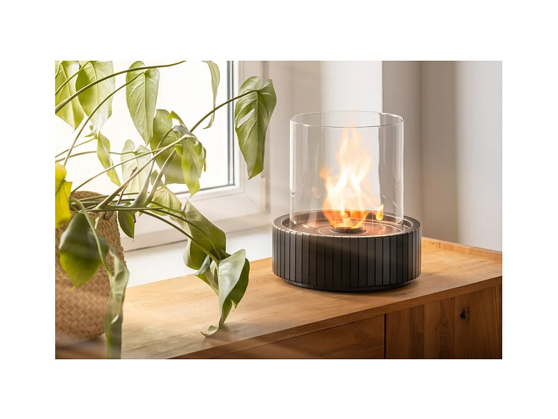 Planika - Cheminée bioéthanol portable de table Lotus avec technologie Commerce, verre cylindrique