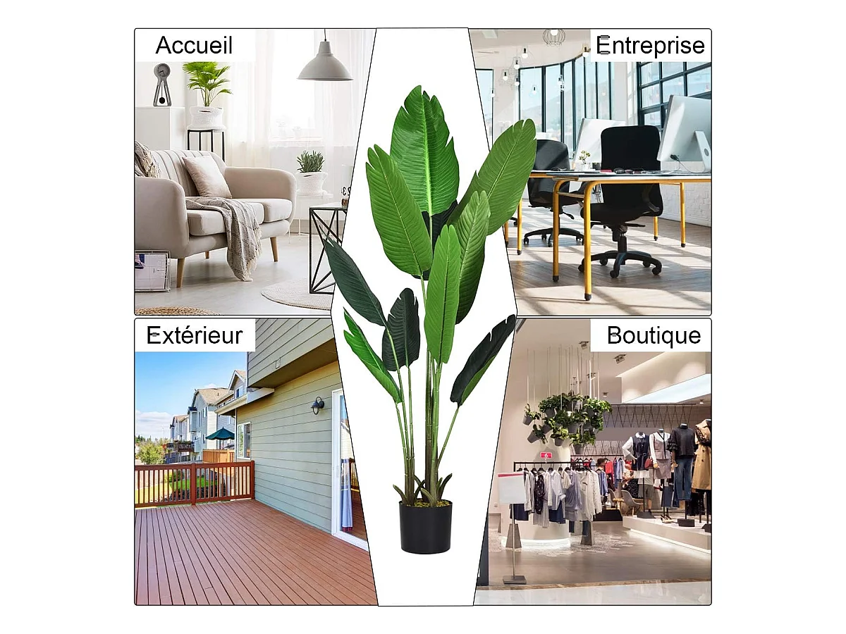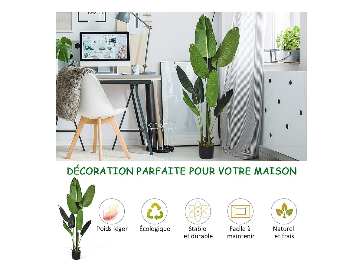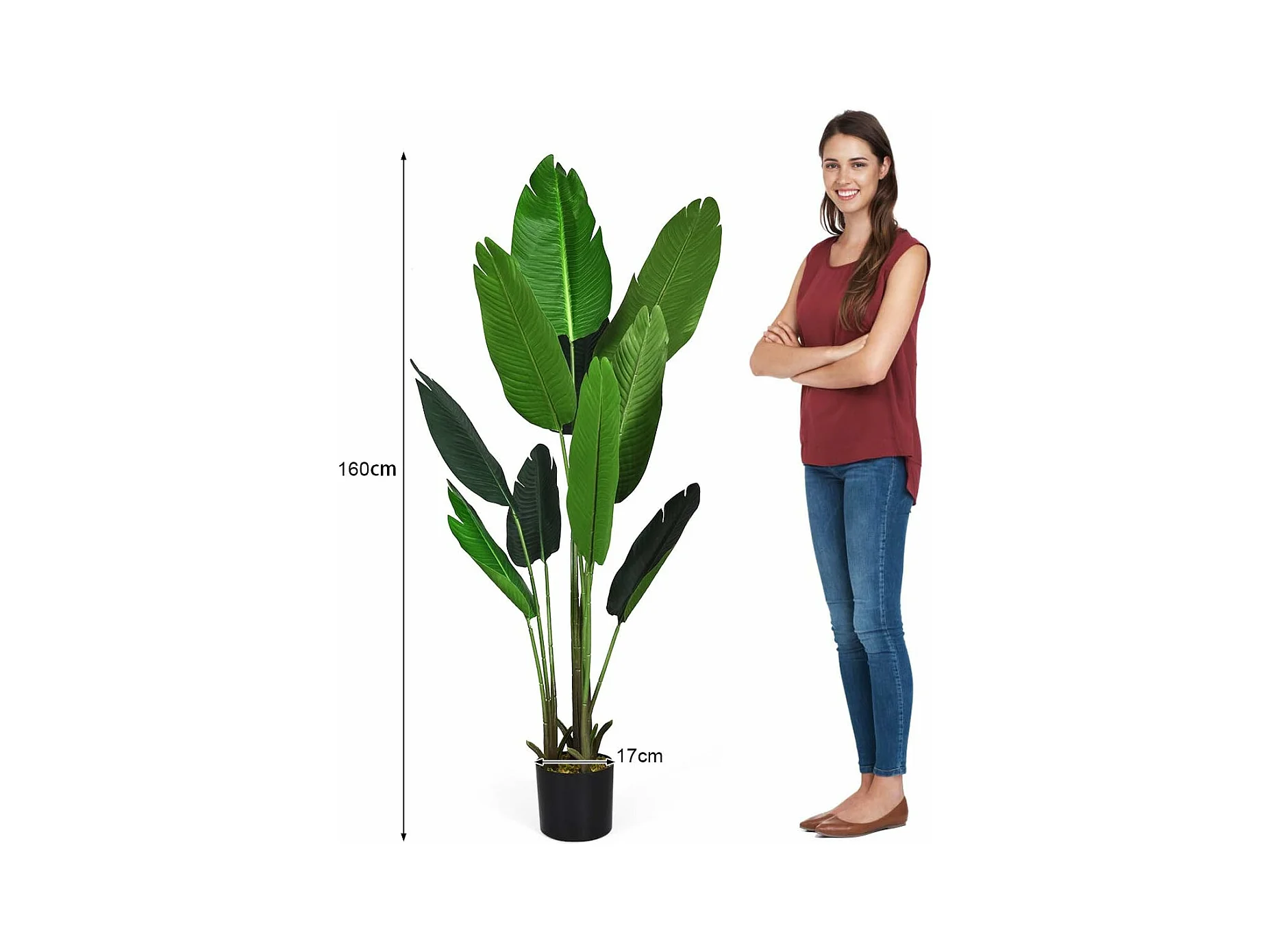 Plante Artificiel Bananier Avec Pot 160CM, avec 10 Feuilles Tropicales et Tronc en Bois et PE, Idéal pour Jardin, Magasin, Bureau, 160CM