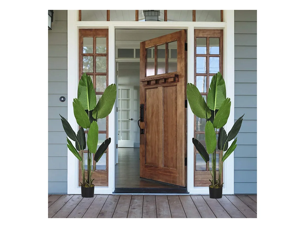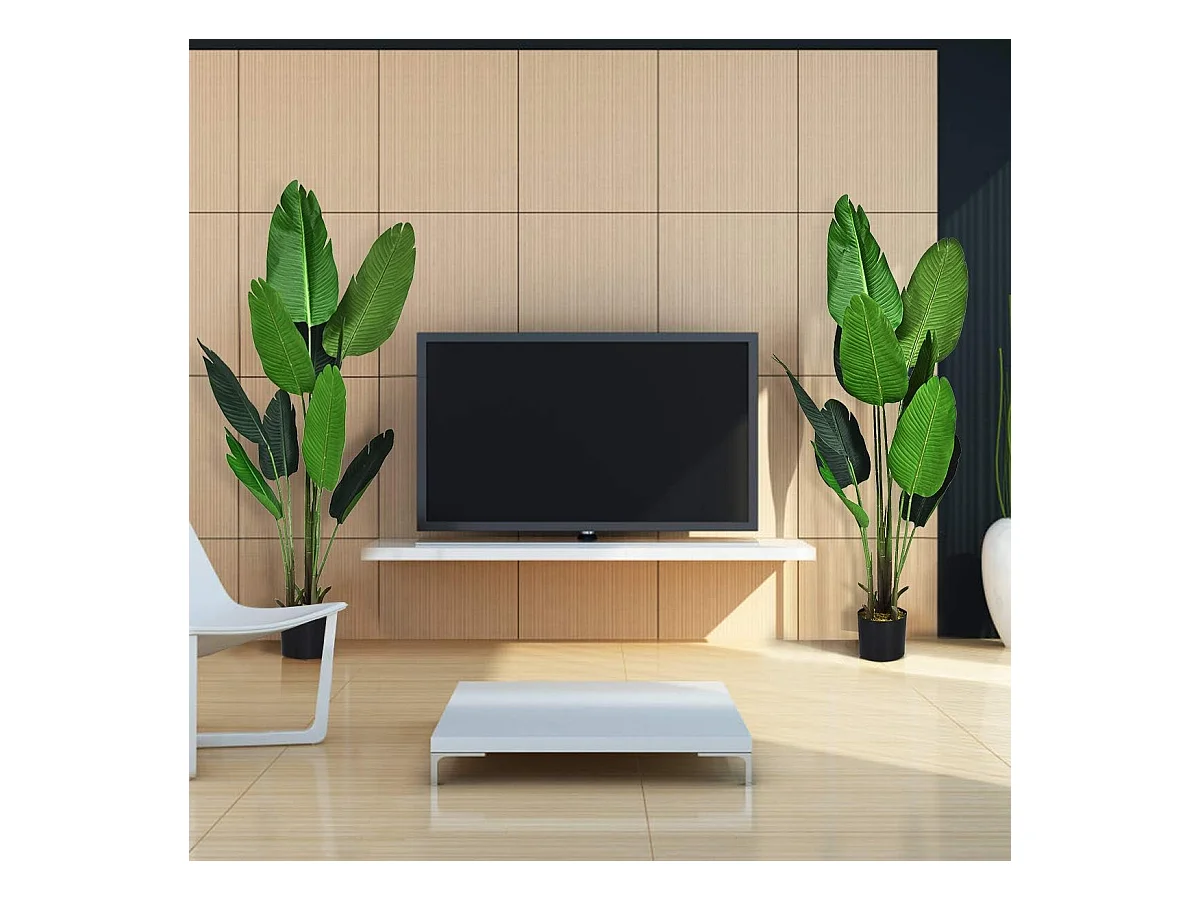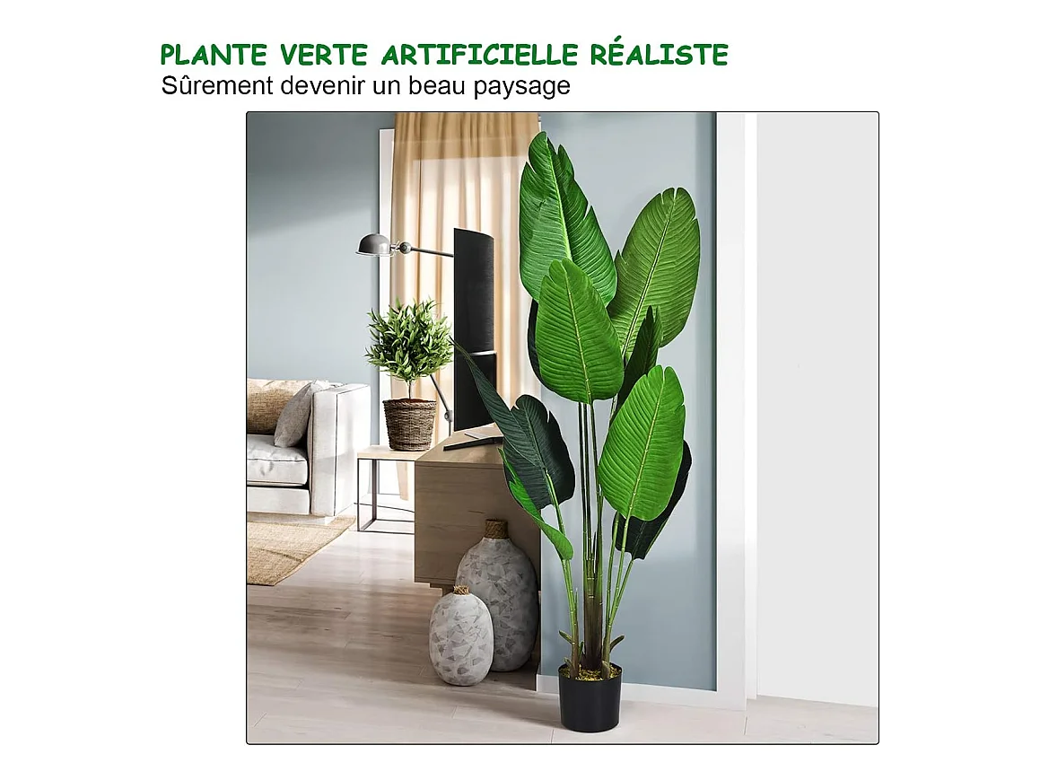 Plante Artificiel Bananier Avec Pot 160CM, avec 10 Feuilles Tropicales et Tronc en Bois et PE, Idéal pour Jardin, Magasin, Bureau, 160CM