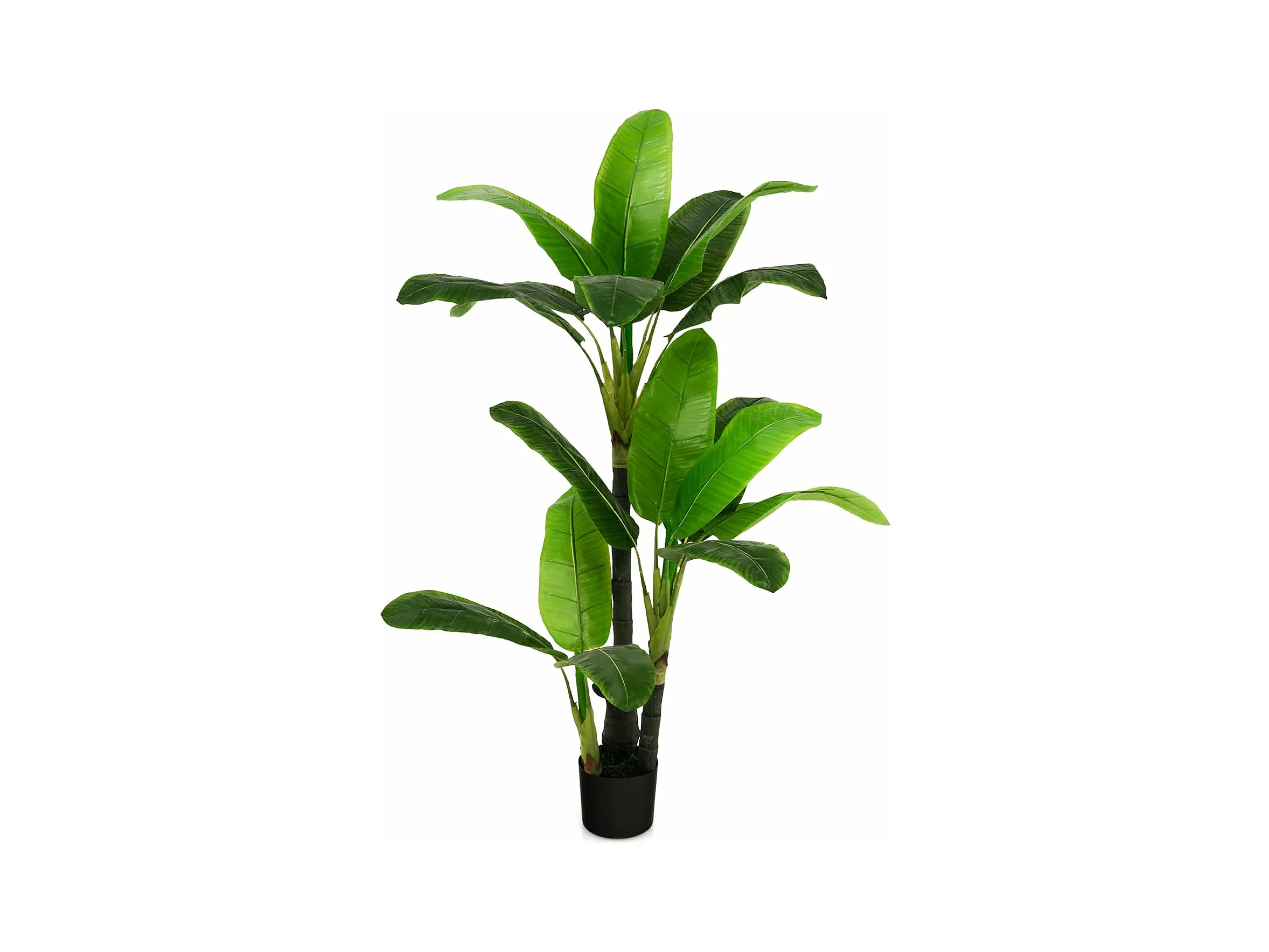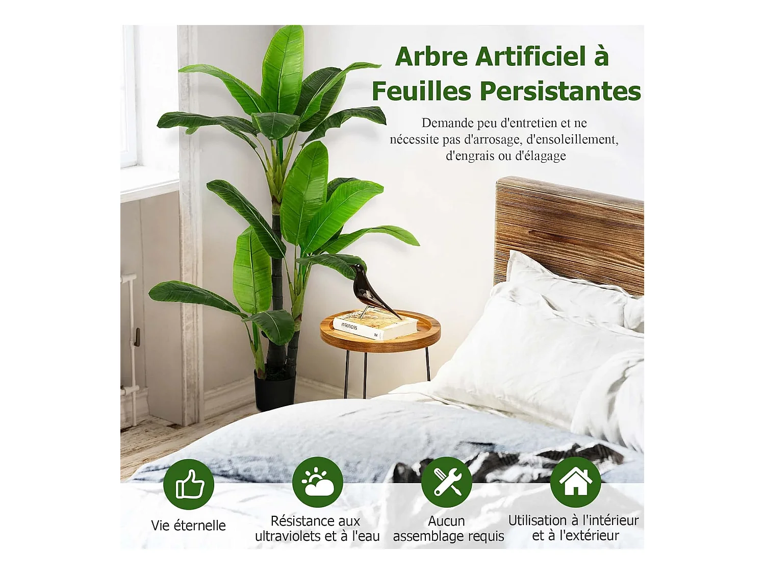 Plante Artificiel Bananier Avec Pot 160CM, avec 10 Feuilles Tropicales et Tronc en Bois et PE, Idéal pour Jardin, Magasin, Bureau, 160CM