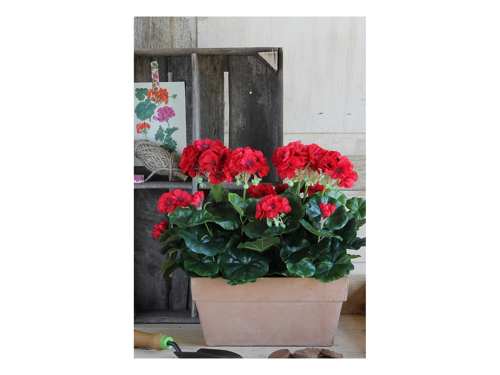 Plante artificielle en polyester et ciment de sable - 29 x 13 x 40 - Rouge - GERANIUM