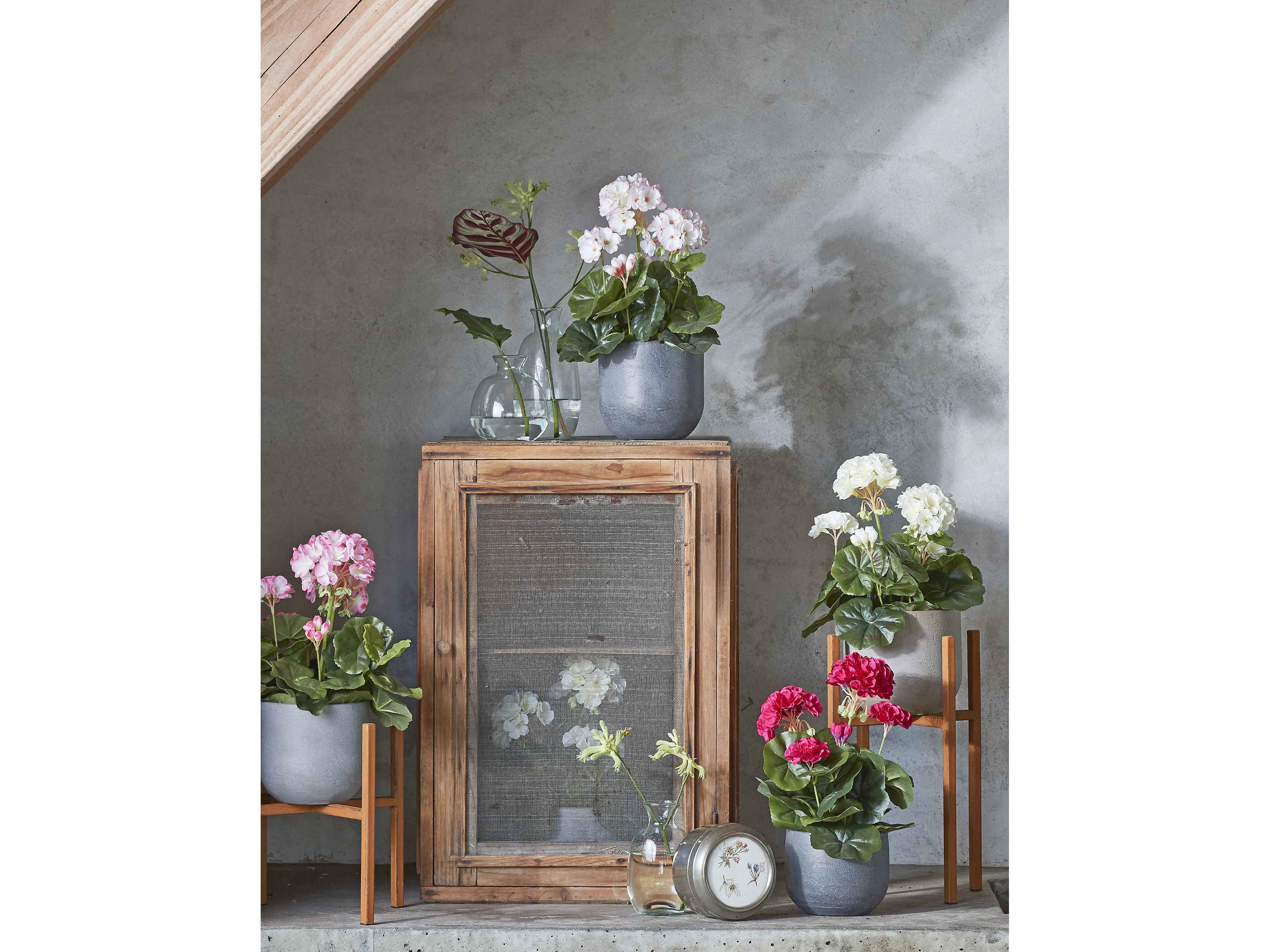 Plante artificielle en polyester et terre cuite - 34 x Ø20 - Blanc, rose - GERANIUM