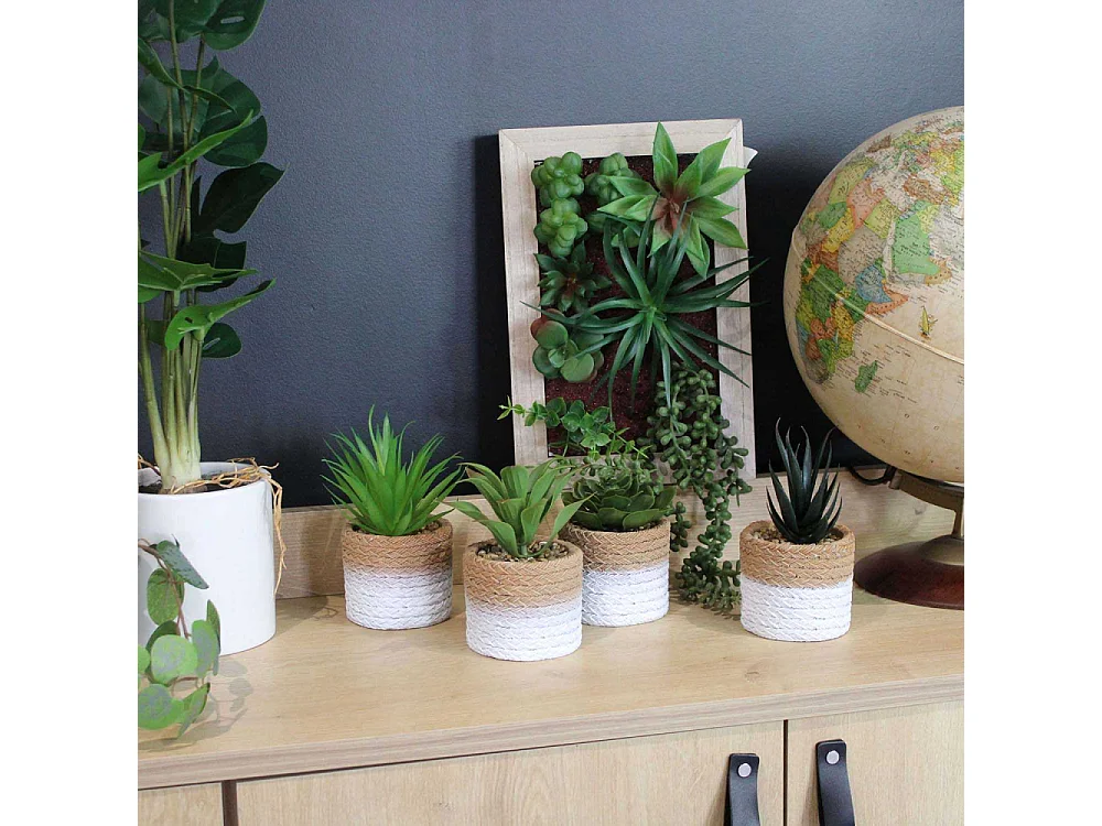 Plante succulente en pot bicolore 8 x 15 cm (Lot de 4)