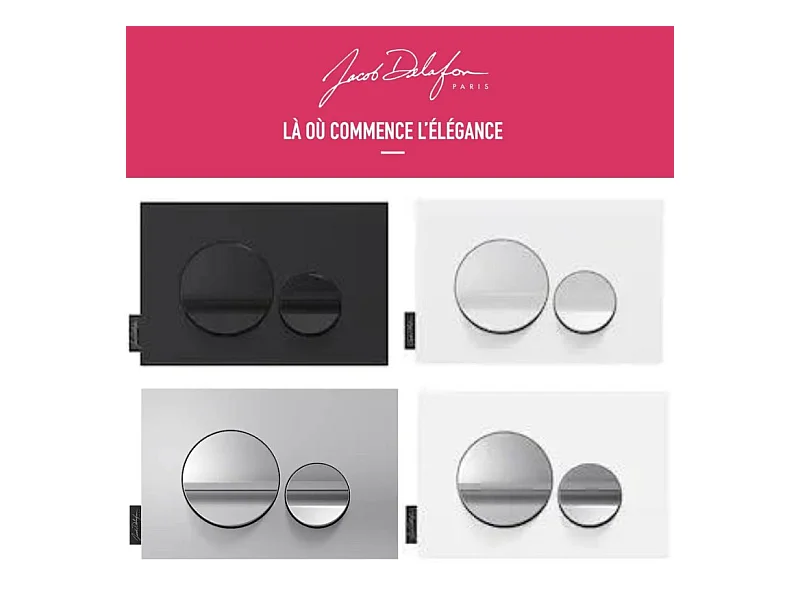 Plaque de commande JACOB DELAFON, double touches rondes Chrome brillant/Blanc mat