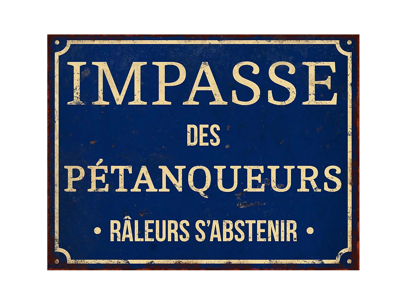 Plaque décorative en métal humour 33 x 25 cm Impasse des pétanqueurs