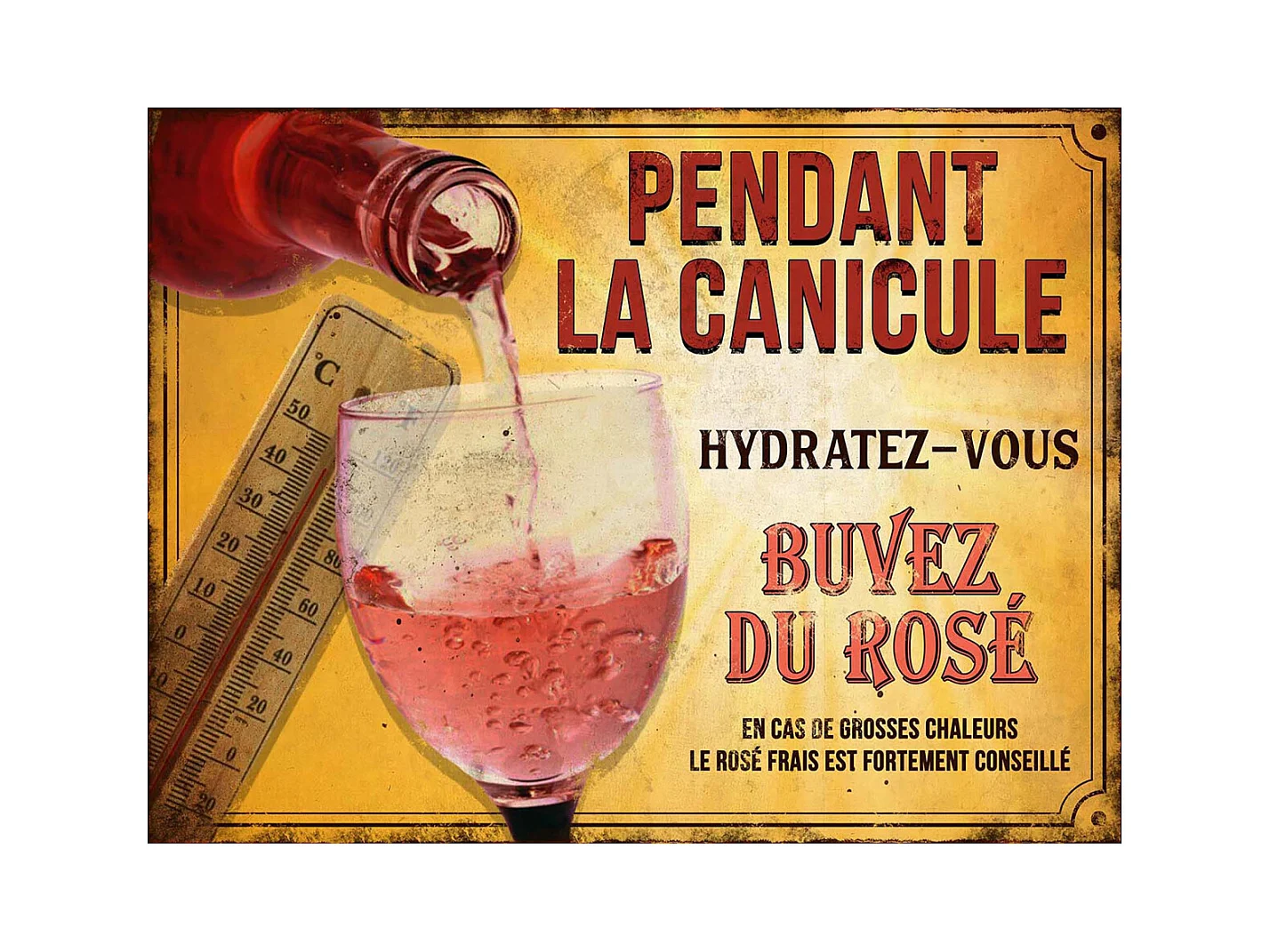 Plaque décorative en métal humour 33 x 25 cm Pendant la canicule...
