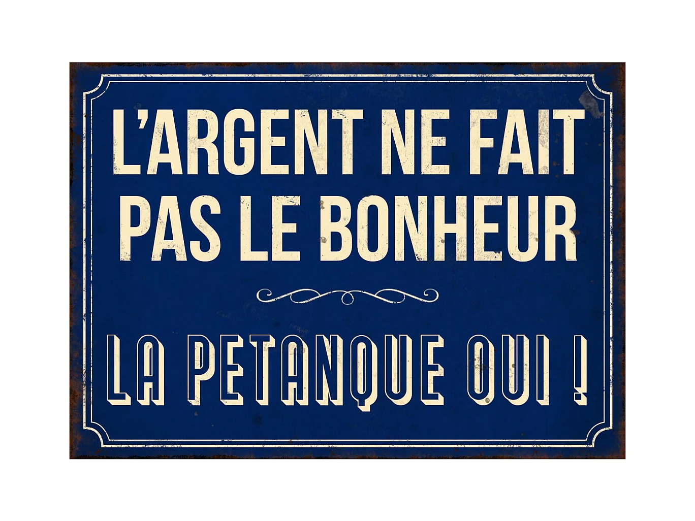 Plaque en métal humour 21 x 15 cm Bonheur pétanque