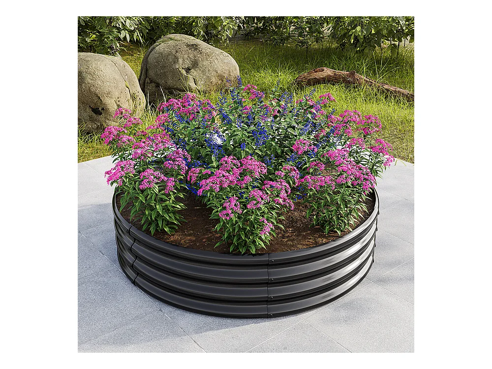Plate bande surélevée galvanisée jardinières extérieures plates bandes rondes jardinage légumes fruits fleurs noir 2ft×2ft