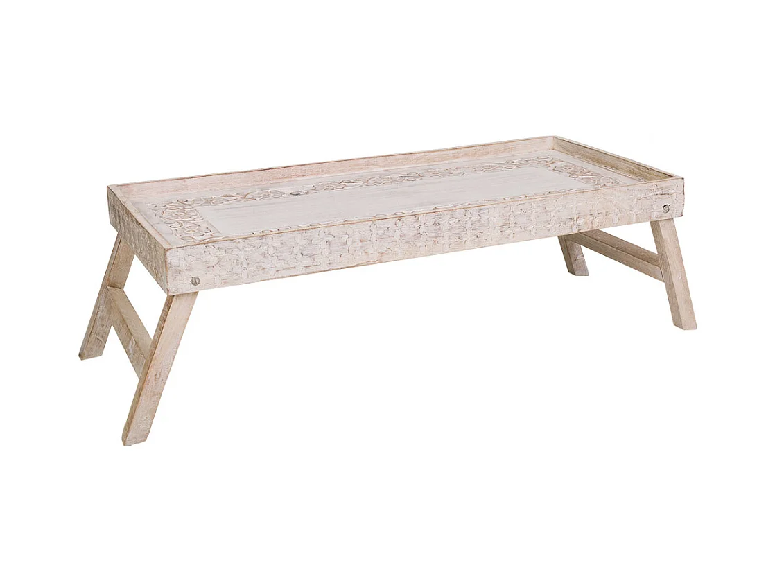 Plateau artisanal en bois blanc 70x30x20h