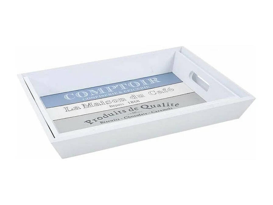 Plateau en bois peint artisanalement blanc 43x29x6h