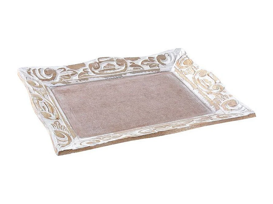 Plateau en bois peint artisanalement blanc 43x29x6h