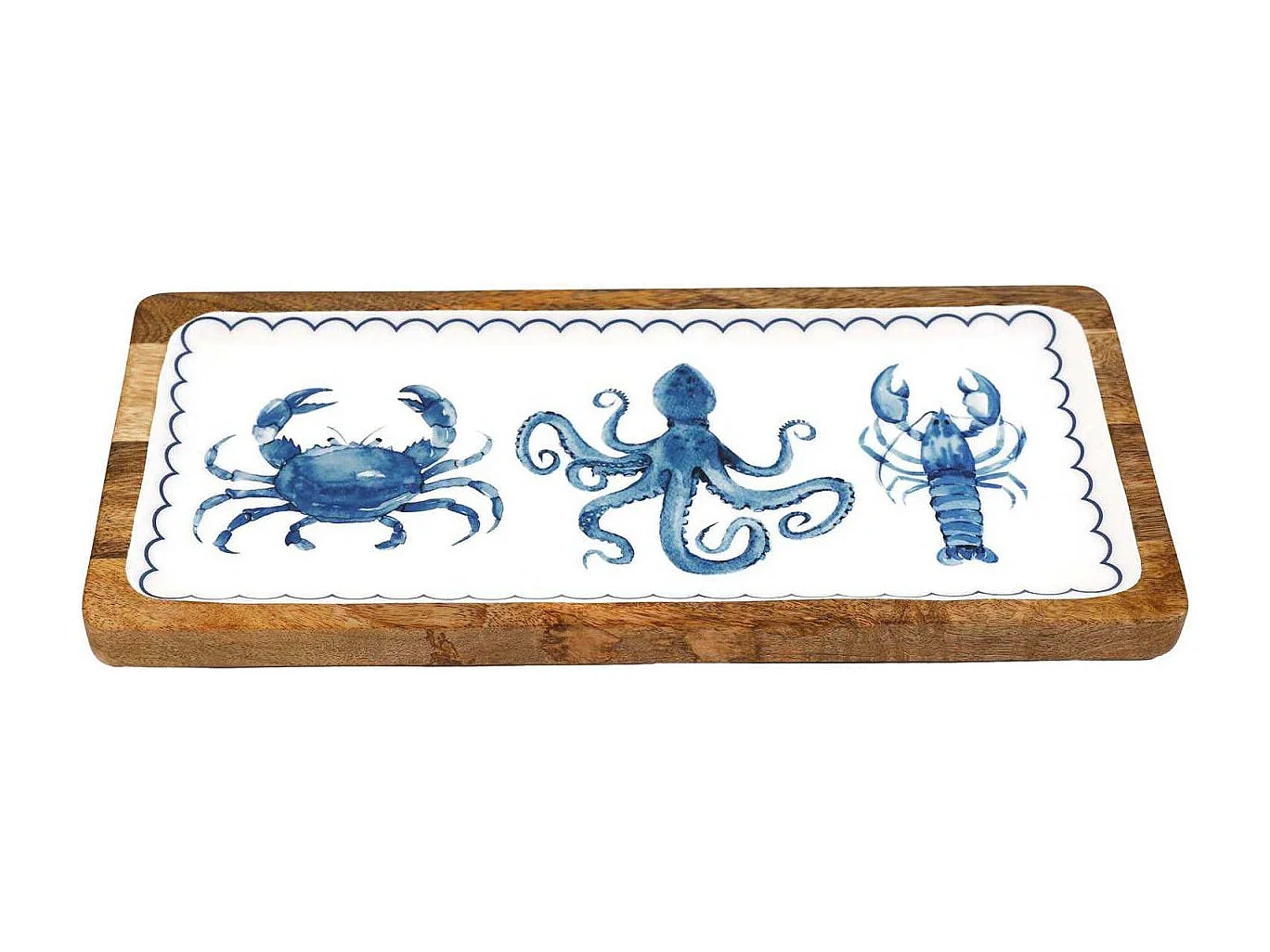 Plateau en manguier et émail Colibri 40 x 19 cm (Lot de 2)