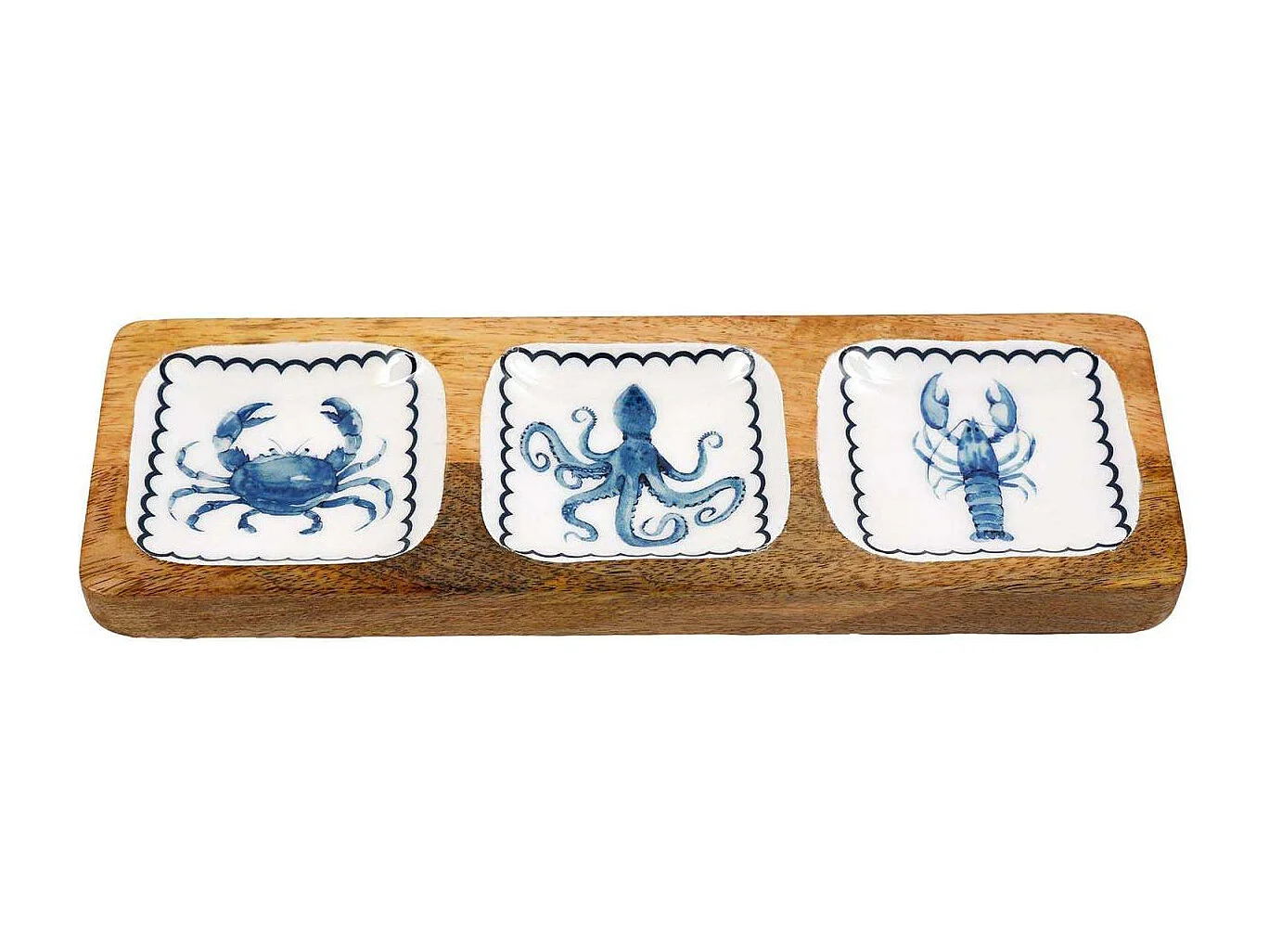 Plateau en manguier et émail Colibri 40 x 19 cm (Lot de 2)