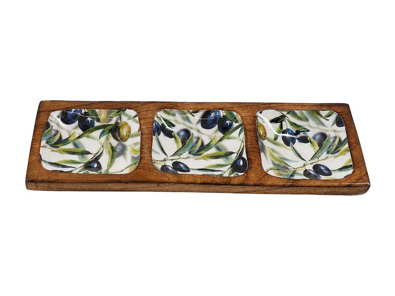 Plateau en manguier et émail Colibri 40 x 19 cm (Lot de 2)