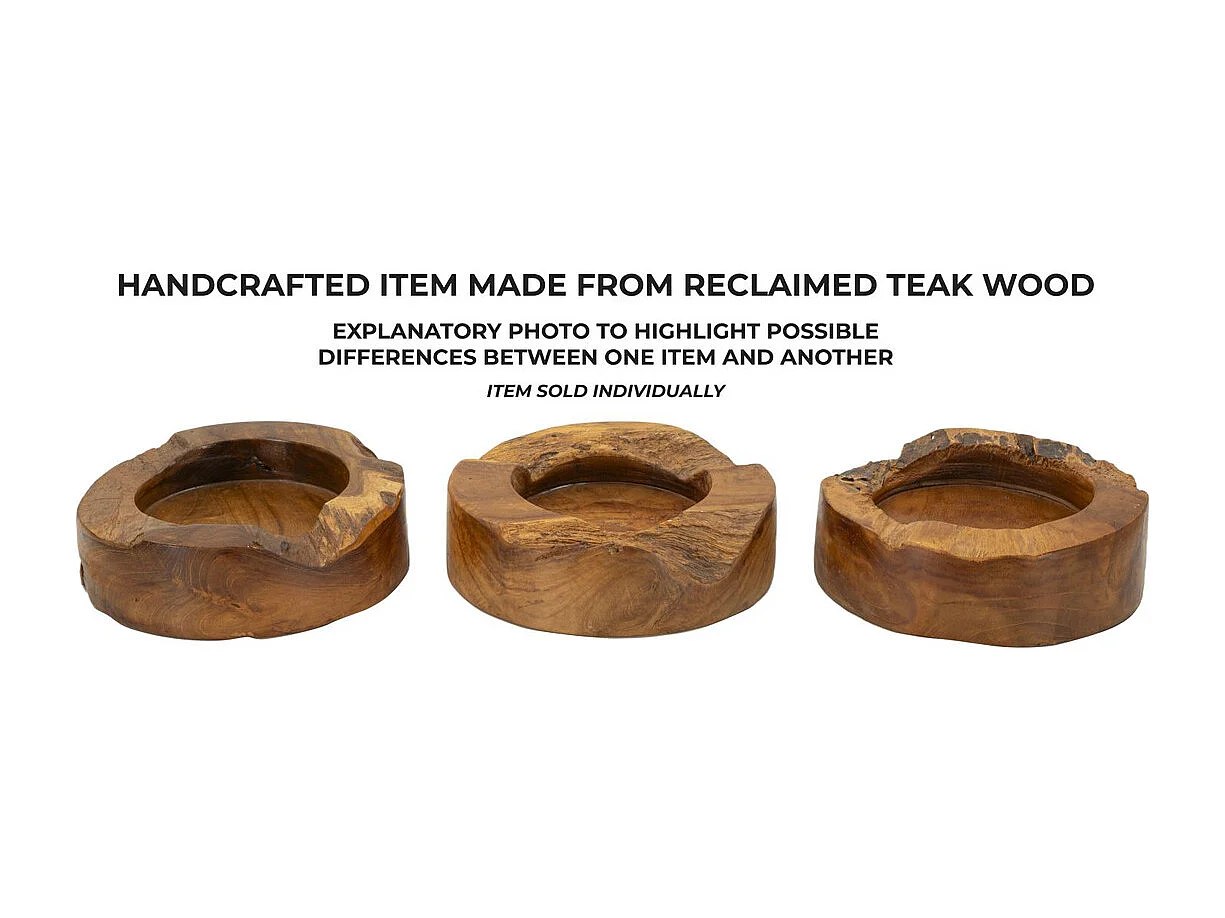 Plateau de présentation rond bois de teck D. 30 cm sur pieds - KESTIS