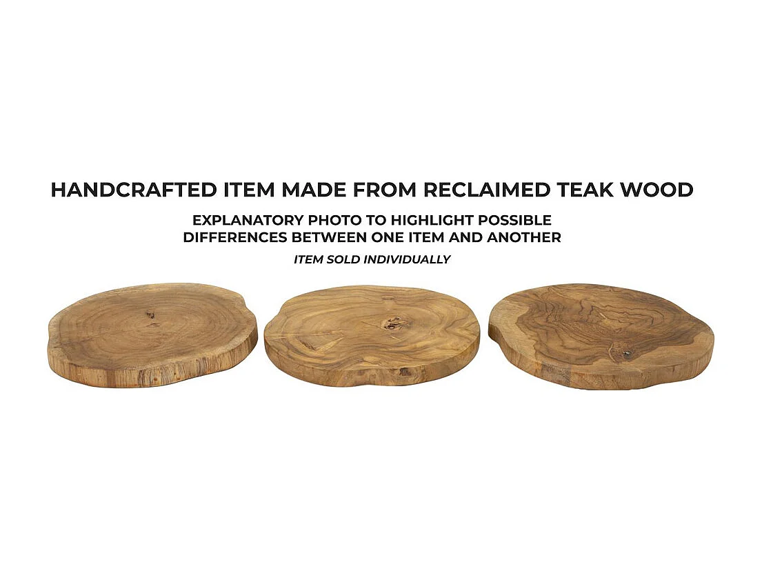 Plateau de présentation rond bois de teck D. 30 cm sur pieds - KESTIS