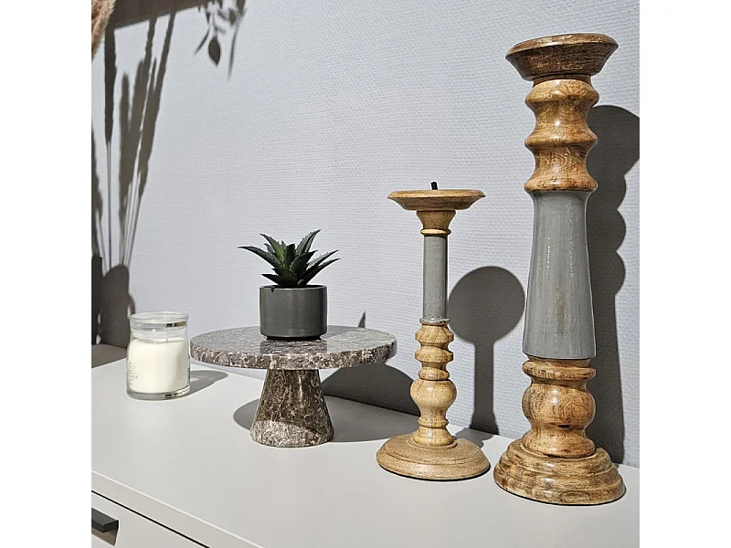 Plateau / Présentoir rond sur pied D. 25 cm en marbre gris - MARGARET