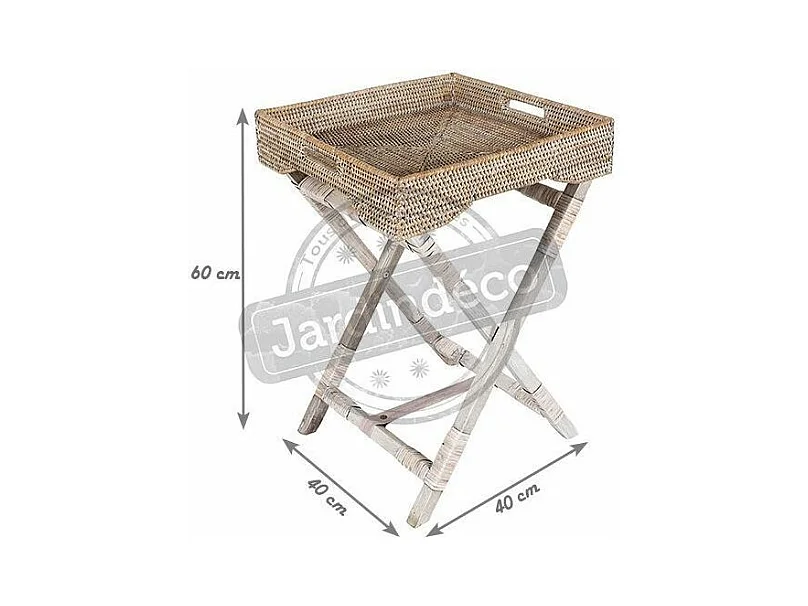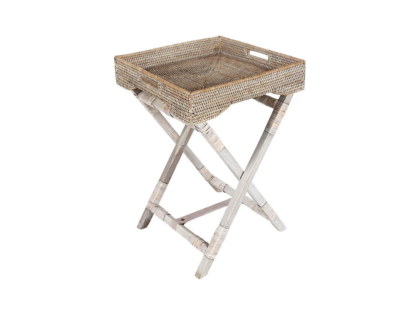 Plateau sur pied en rotin patiné blanc