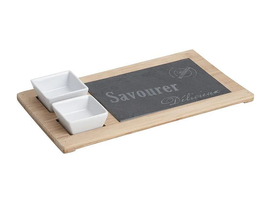 Plateau ardoise bambou avec 2 coupelles – Service apéritif élégant