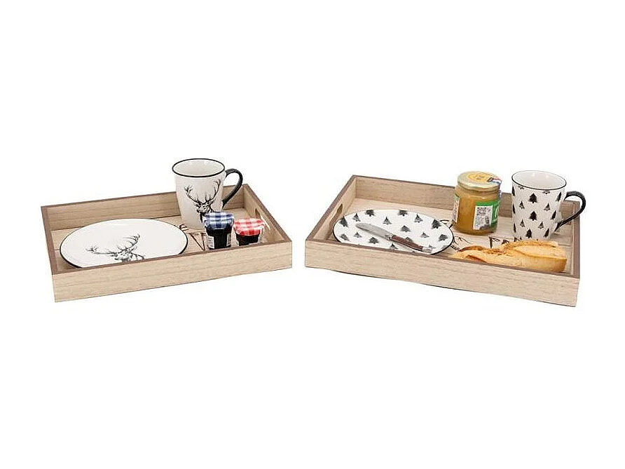 Plateaux rectangulaires en bois naturel Arbre de vie (Lot de 2)