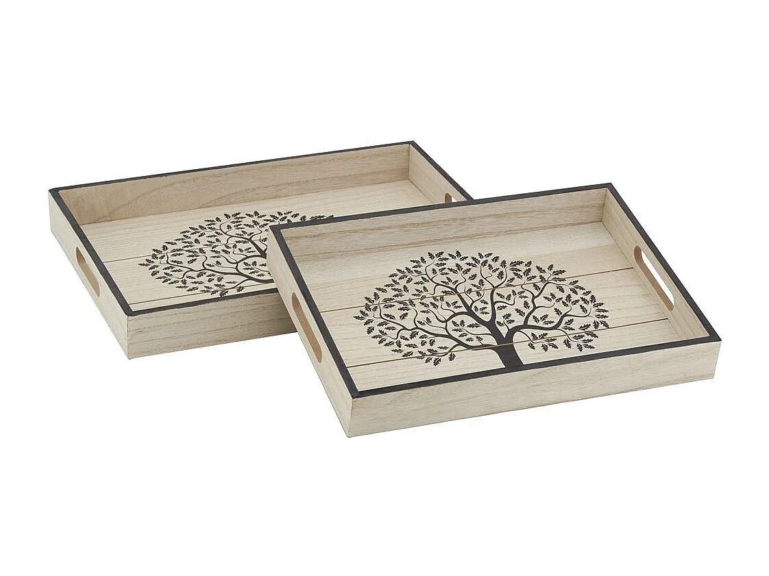 Plateaux rectangulaires en bois naturel Arbre de vie (Lot de 2)