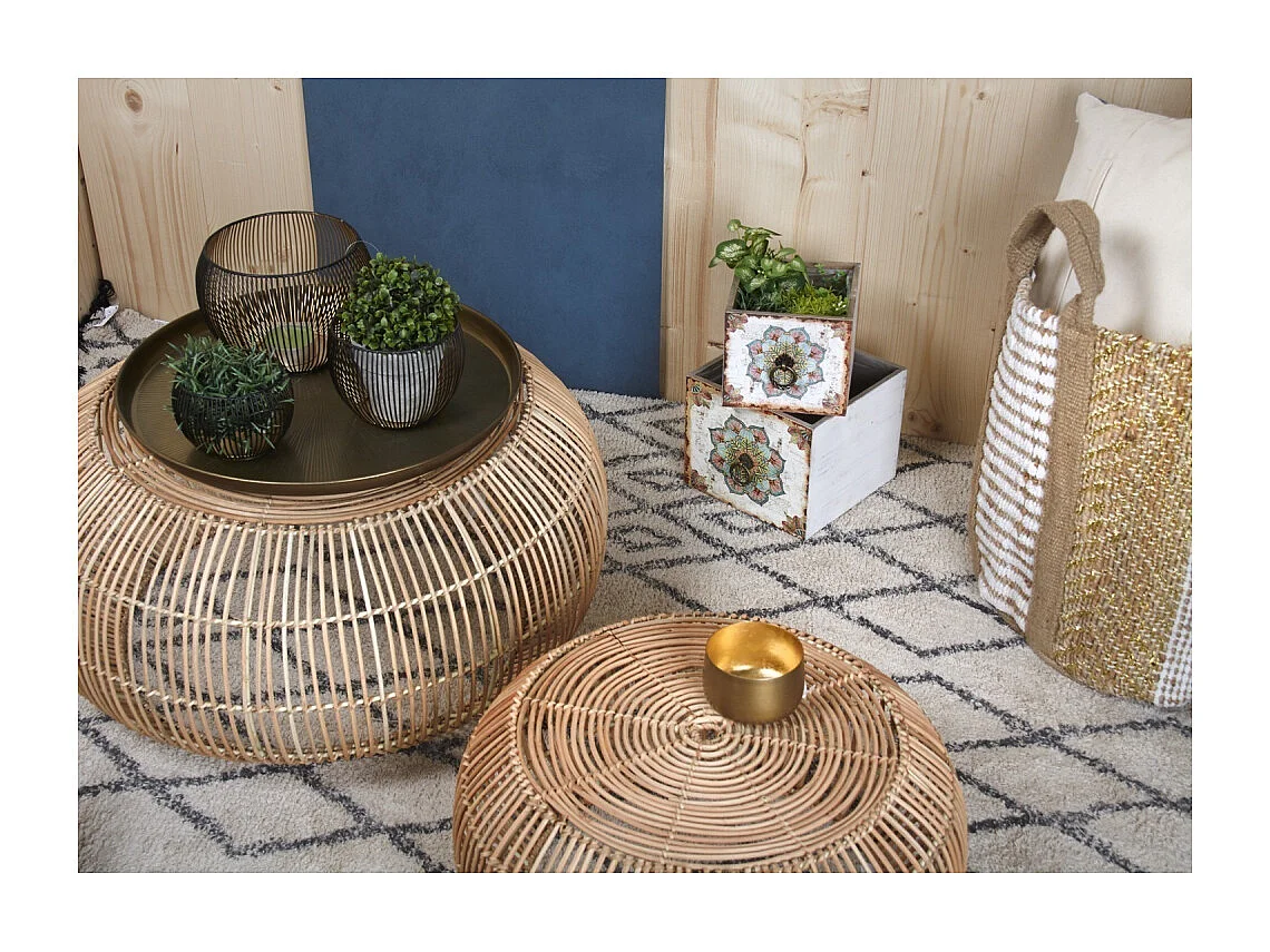 Plateaux ronds en métal finition doré antique (Lot de 2)