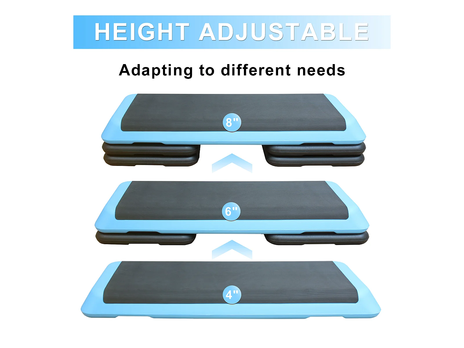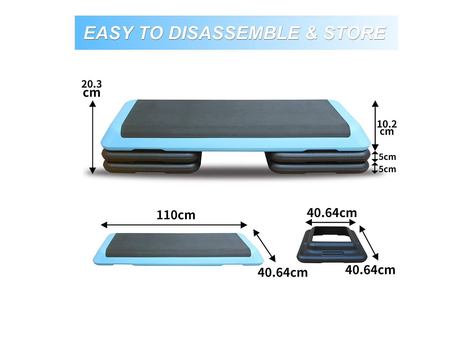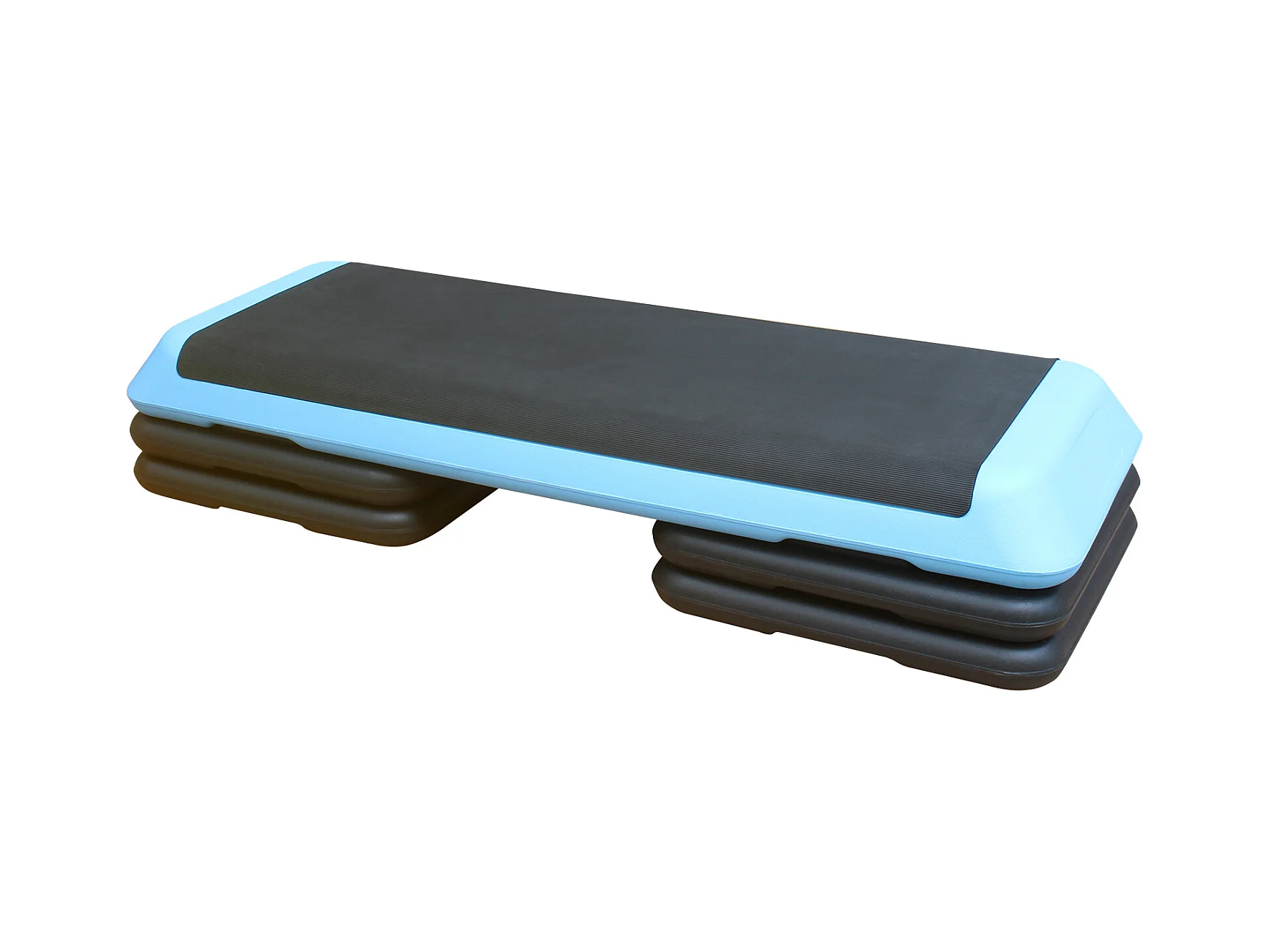 Plateforme d'aérobic réglable, surface antidérapante, plastique ABS, bleu, avec 4 rehausseurs (109x41x11 cm)