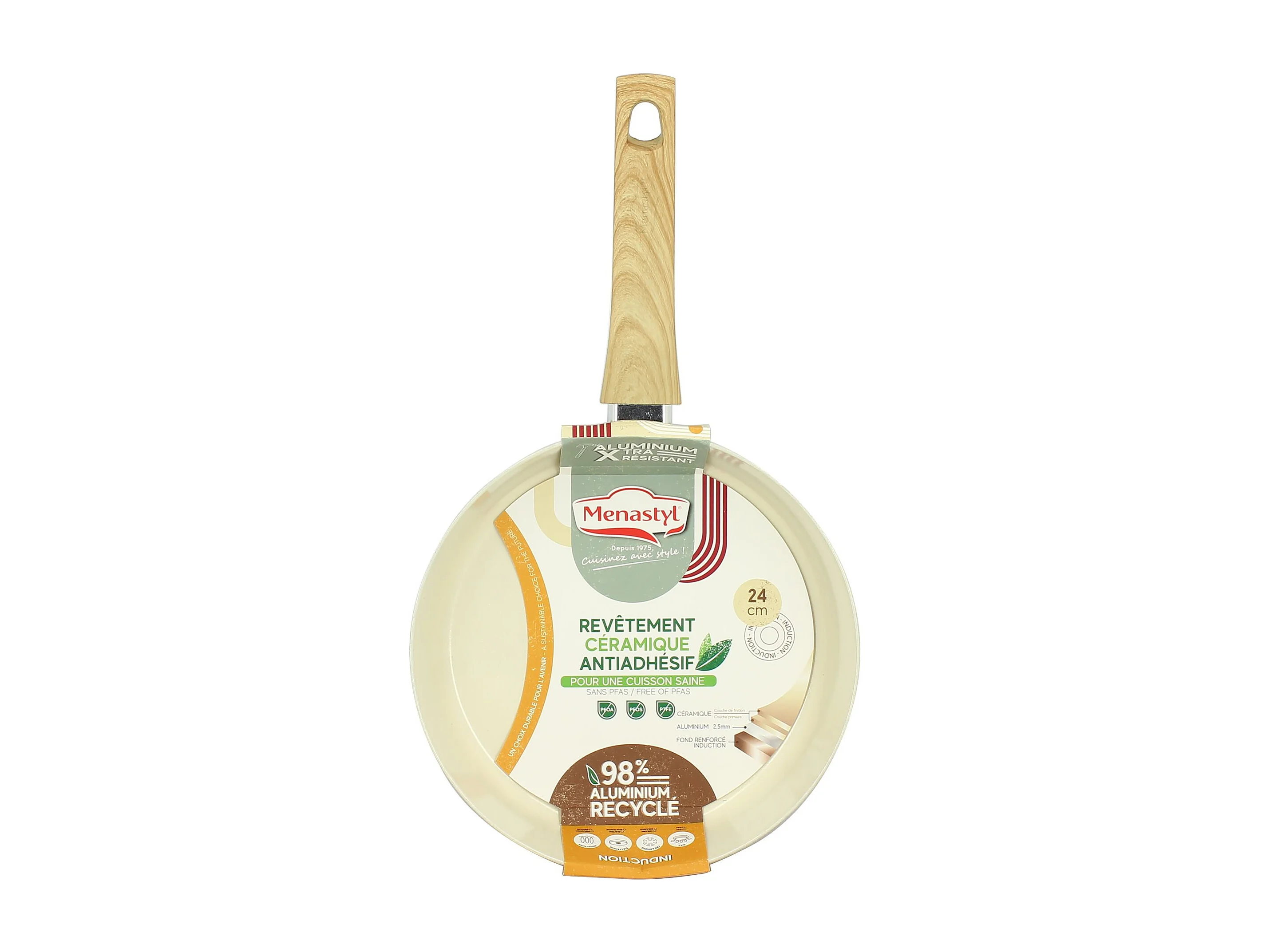 Menastyl - Poele 24cm Colorama Creme - En Aluminium - Revetement Antiadhesif En Ceramique