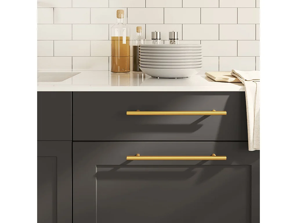Poignées d'armoire 10 pcs doré 224 mm acier inoxydable
