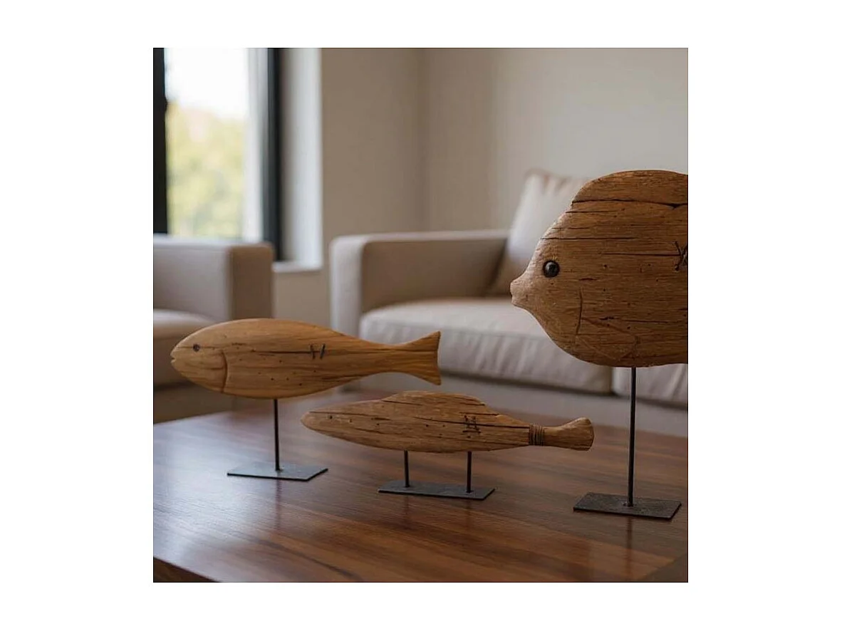 Poisson sur pied en bois recyclé et métal Moyen modèle