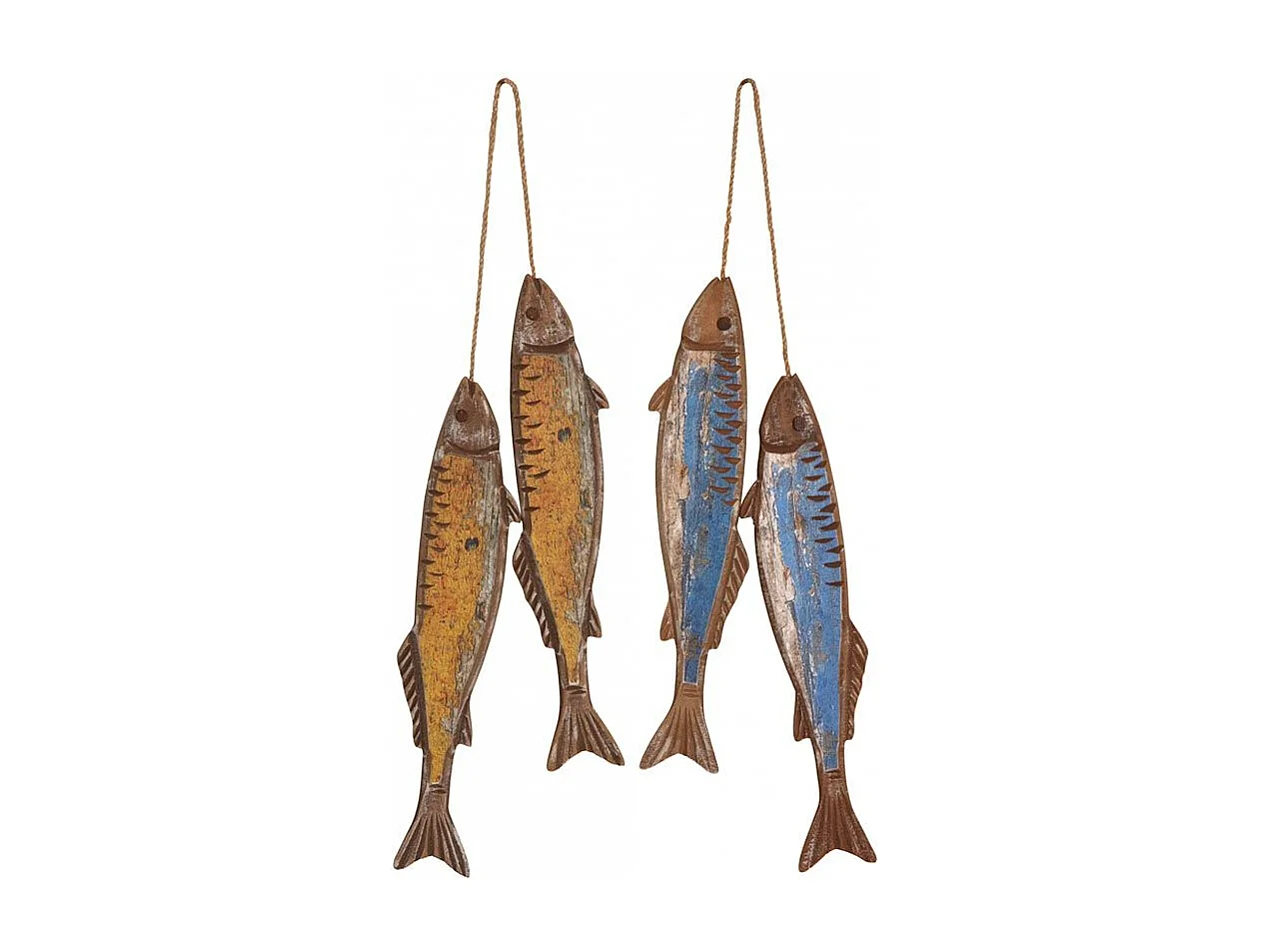 Poissons à suspendre en bois jaune et bleu Lot de 2