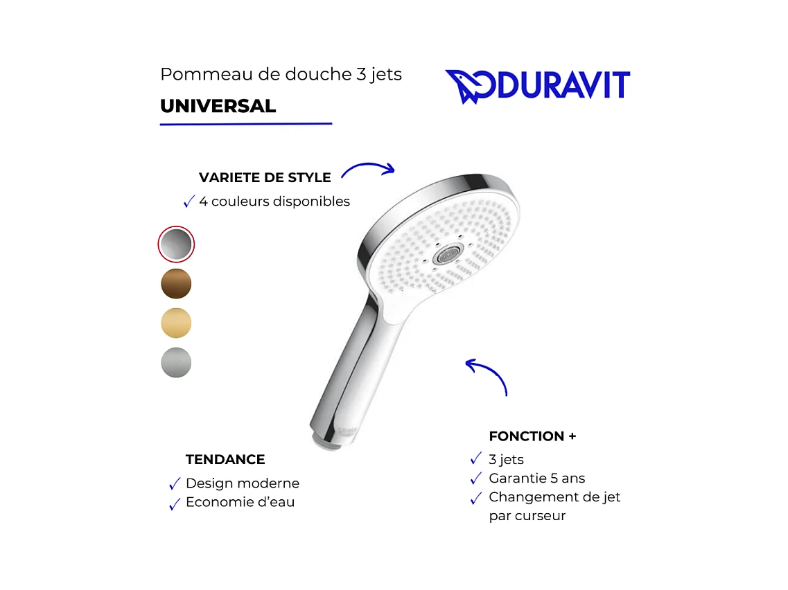 Pommeau de douche DURAVIT Universal 11 cm 3 jets chromé blanc