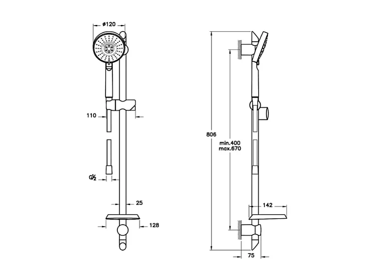 Pommeau de douche VITRA Master Slot 3 jets avec barre, porte savon et flexible